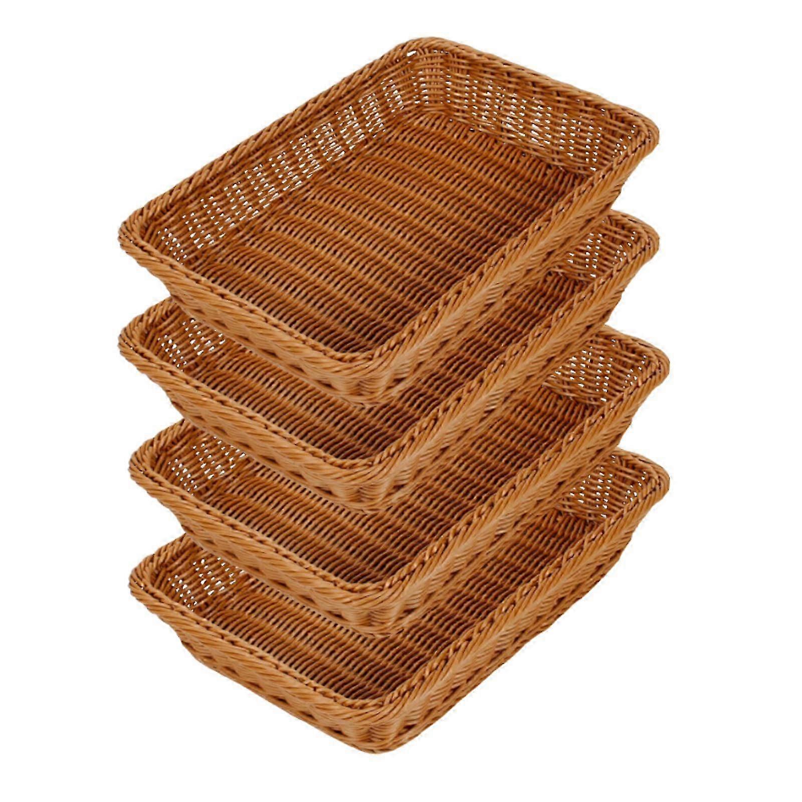 Set of 4 Handmade 16x12 Inch Poly Wicker Baskets for Food Serving, Tabletop Organizer for Restaurants, Bakeries, and Family Gatherings