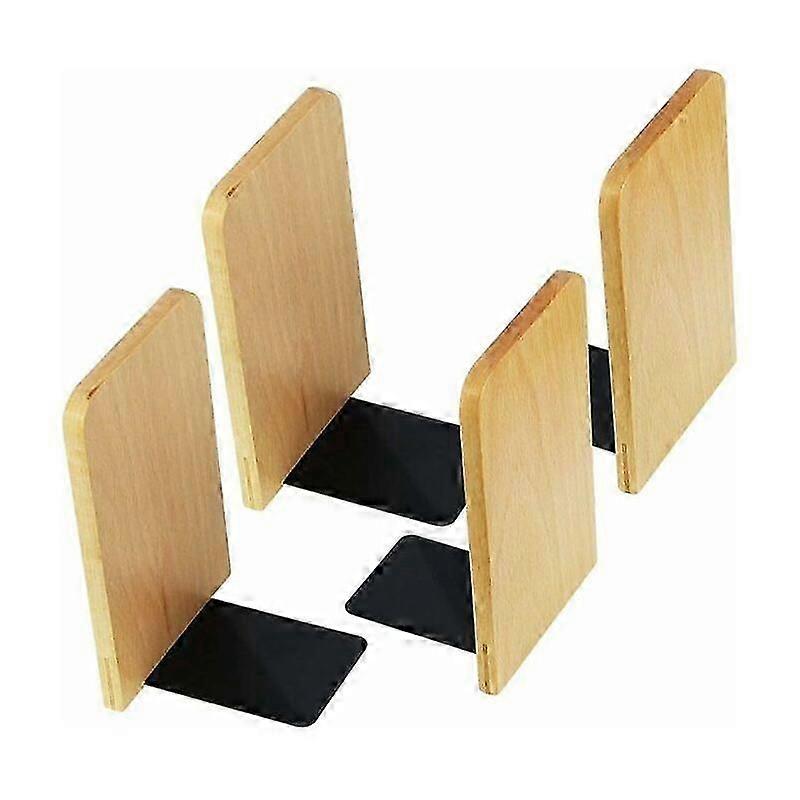Set of 4 Wooden Bookends Non-Slip Corner Bookends for Home, Office, School, Library, Non-Slip Book Stand