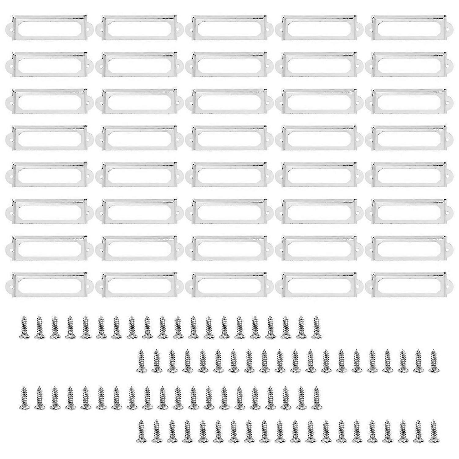 40 set Office Library File Drawer Cabinet Card Tag Label Holder Metal Frame (Silver Tone)