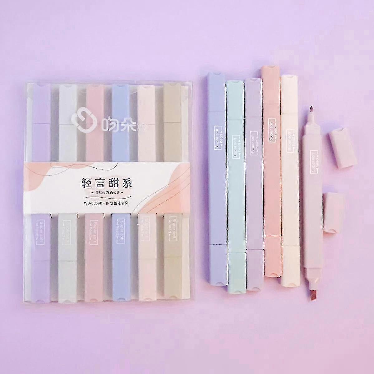 H-6 Pcs/set Double Tip Highlighter Pens Kawaii Manga Markers Midliner Pastel Gel Set Stationery Journal Supplies Gel Pens