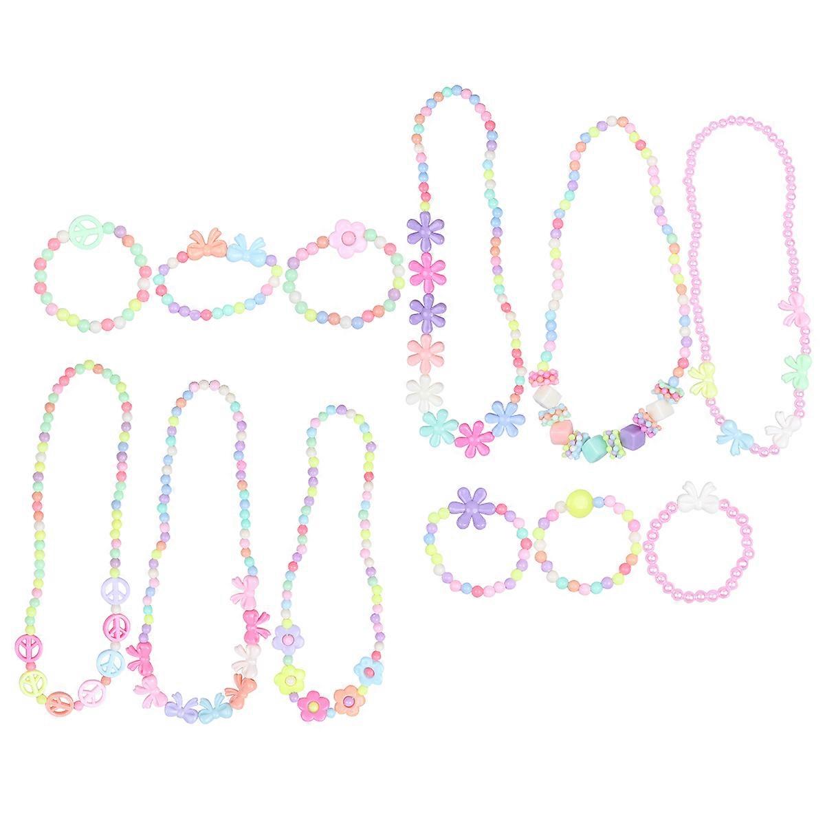 Colorful Acrylic Kids Necklace and Bracelet Set for Pretend Play Adorable Design Easy to Use 12pcs