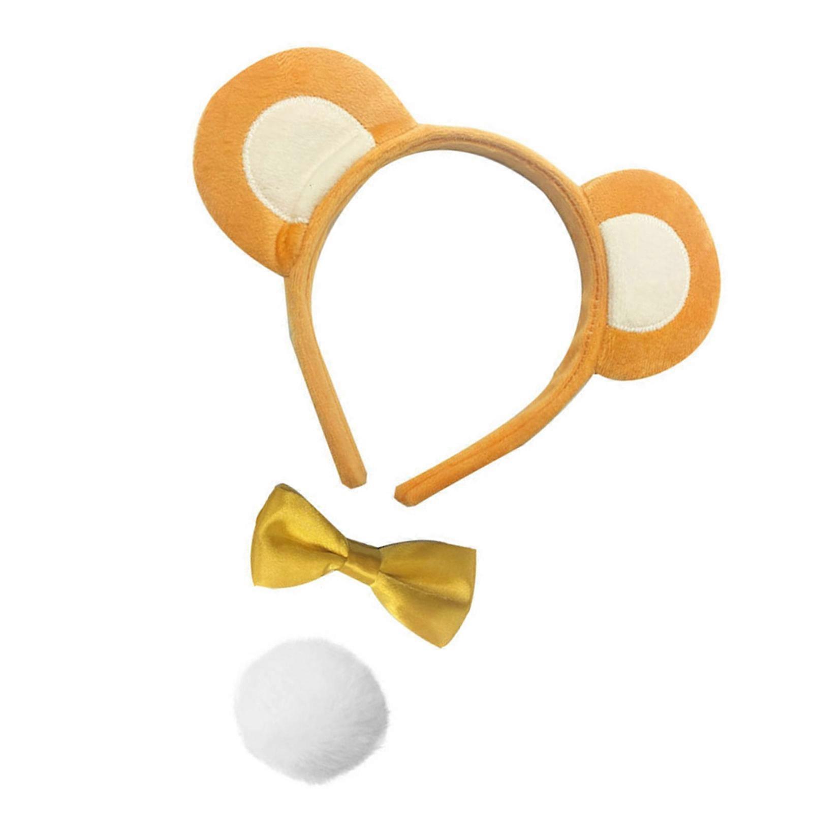 Bear Costumes Set Ears Headband Tail Bowtie Animal Fancy Costumes Kit Accessories Kids Halloween Cosplay Party Props Multicolor