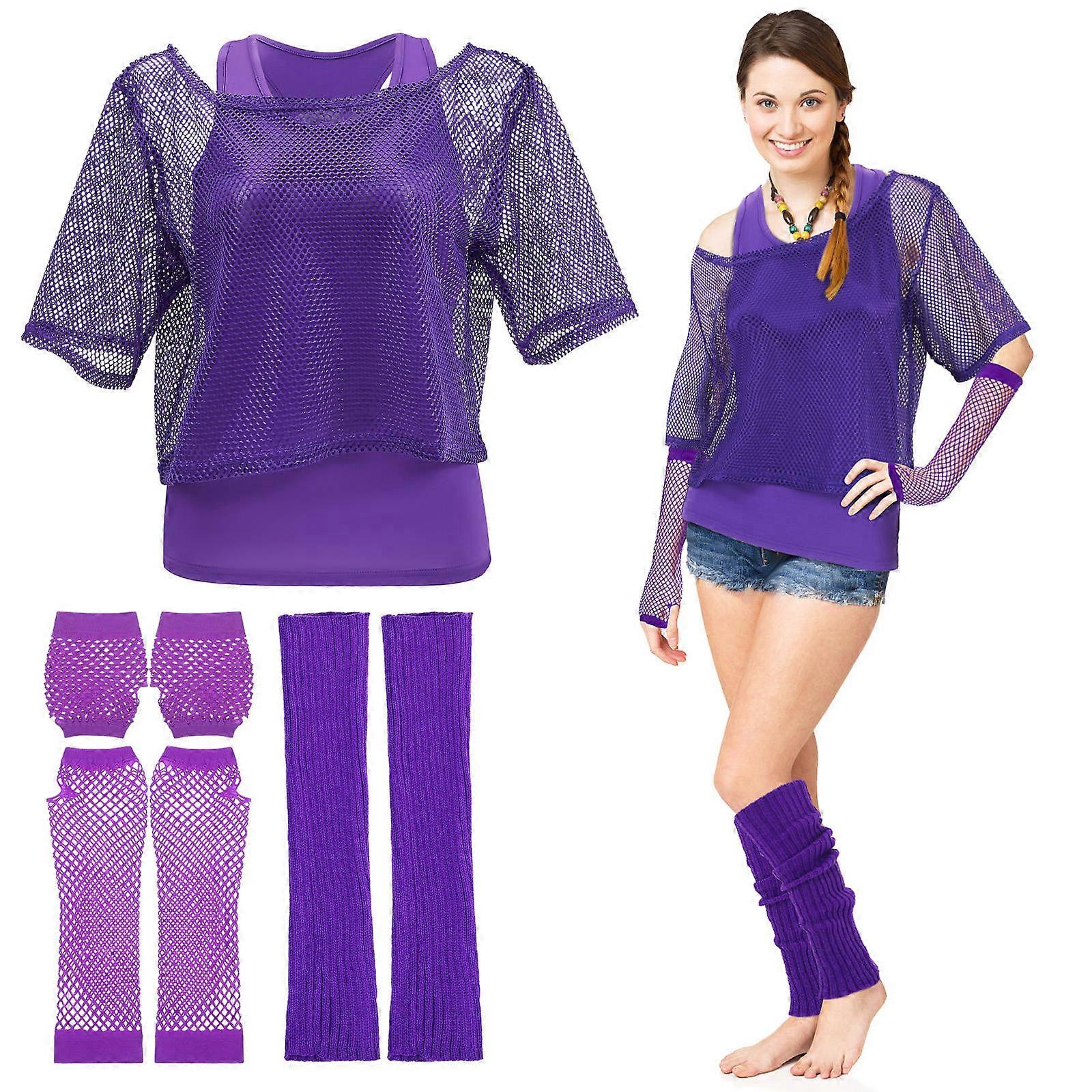 Retro Carnival Costume Set for Women with Fishnet Shirt, Gloves, Leg Warmers and Vest for Masquerade Parties and Themed Events