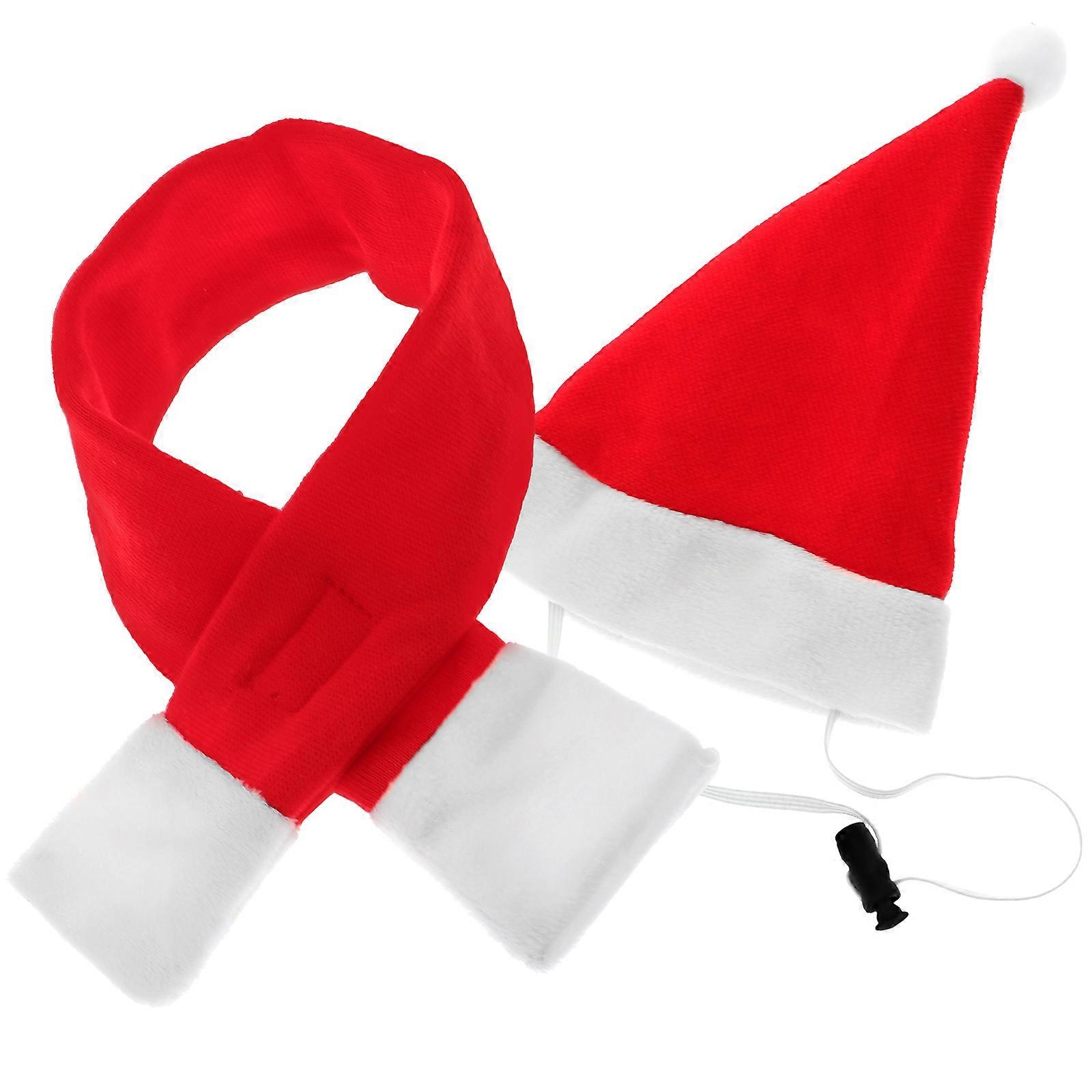 Pet Santa Hat Scarf Red Costume Set for Christmas with 3Pcs Apparel