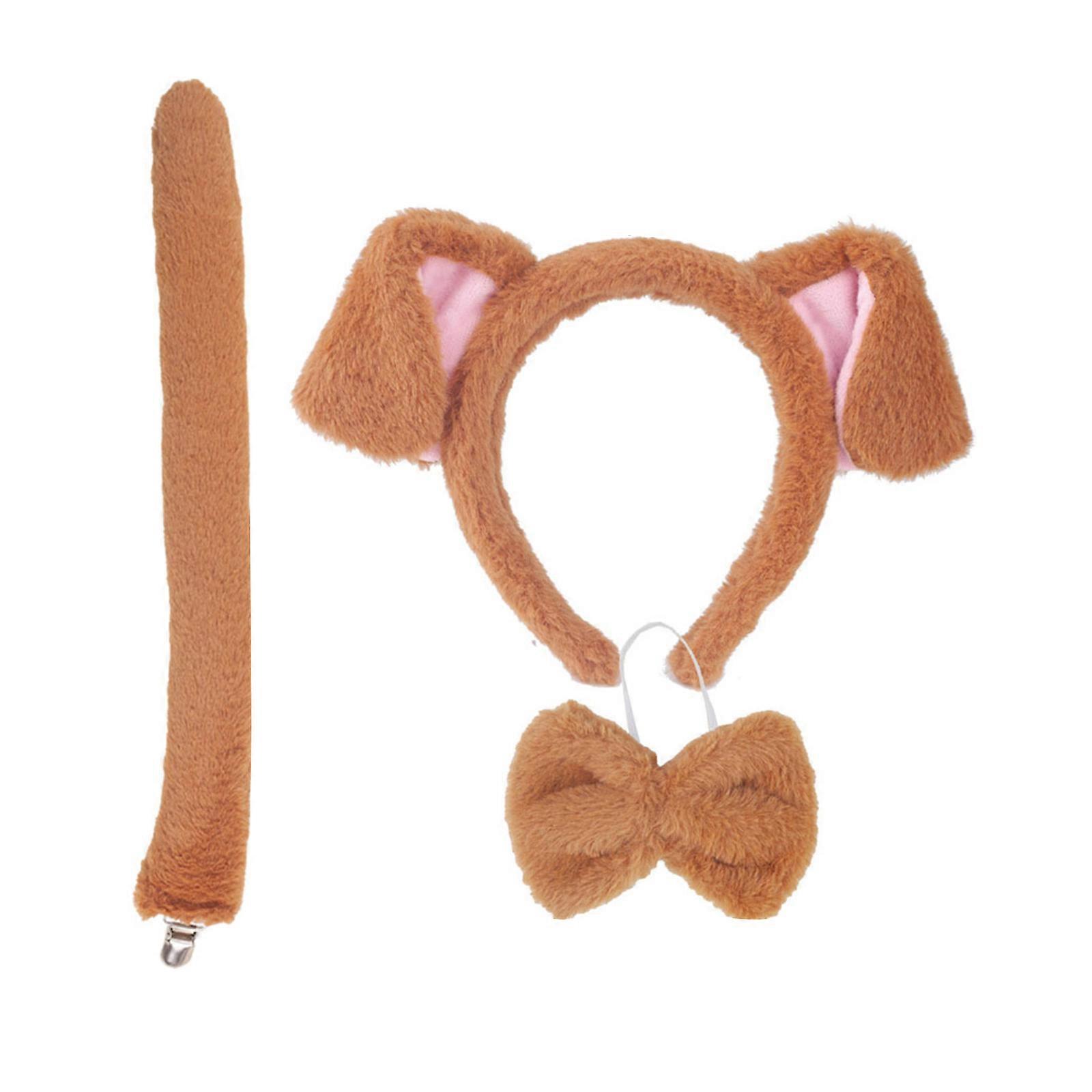 Cute Dog Cosplay Costume Set for Adult Kid Plush Dog Ear Headband/Tail/Bowtie Halloween Party Anime Props Role Play Suit Multicolor