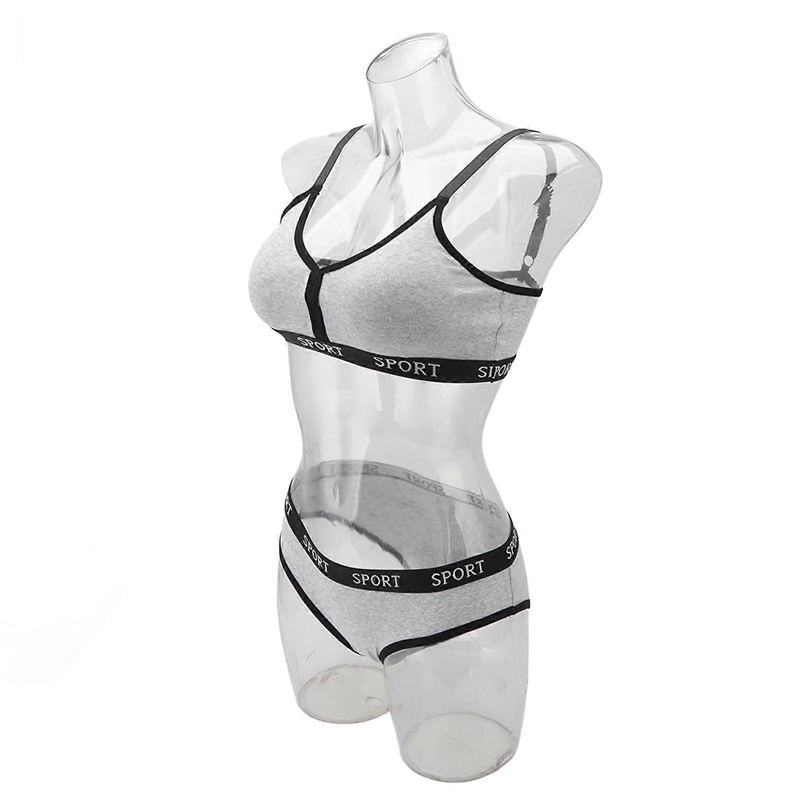Women Sports Bra Underwear Set Soft Breathable Adjustable Combed Cotton Bra Panties for Yoga Exercise Light Grey