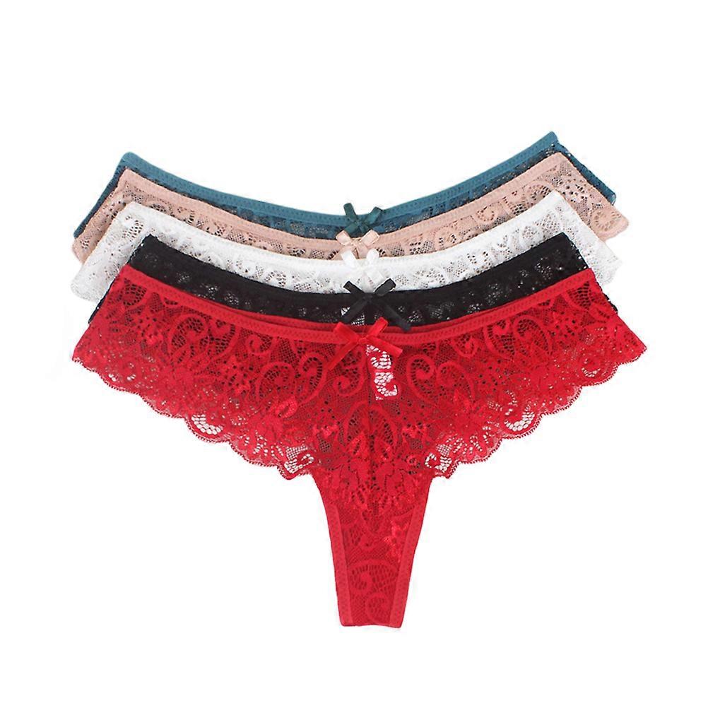 Assorted Color Women Lace Thong Panties Set for 5Pcs