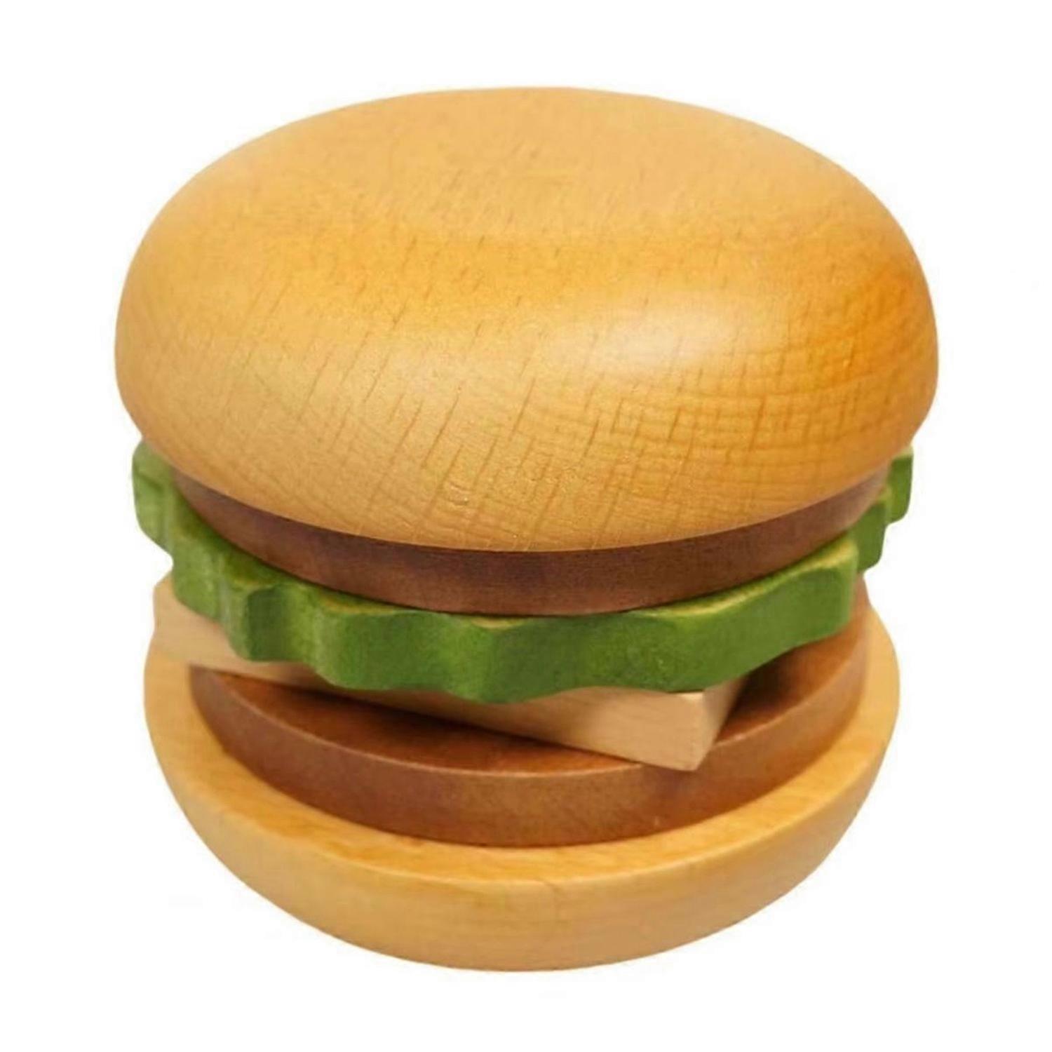 Wooden Hamburg Coaster Set,Solid Wood Teacup Tray for Snacks,Desserts,Anti-Slip, Insulated Burger Sh
