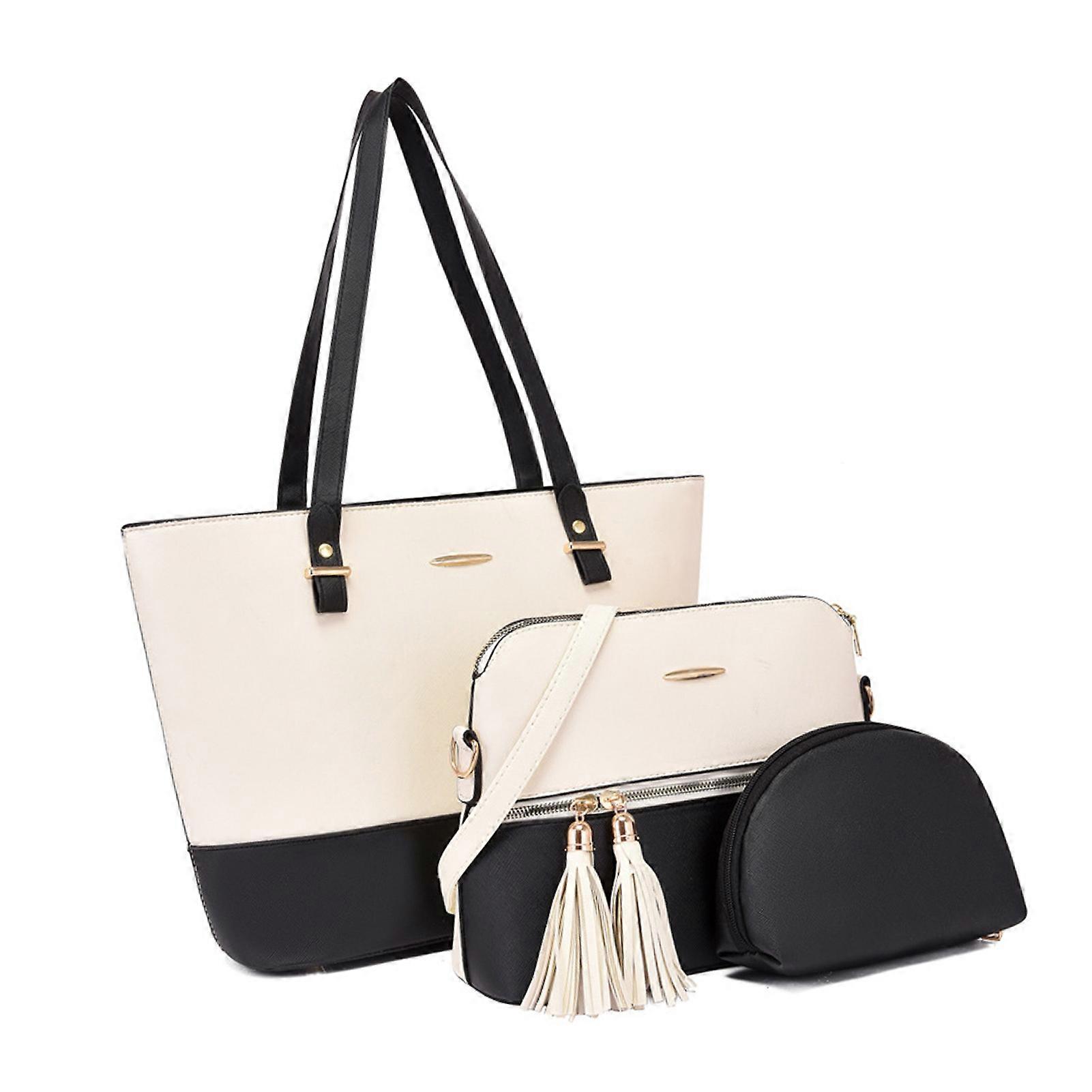 Women Bucket Bag Set Color Block Storage Soft PU Leather Bucket Bag Purse Set for Dating White Black Free Size Item Type: Women Bucket Bag Set Material: PU leather Size: Approx. Large bag: 30x27x12cm Medium bag: 28x20x11cm Small bag: 19x12x7cm Use: To hold items