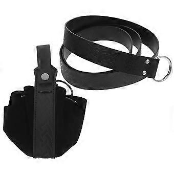 Viking Waist Belt Bag Set Leather Black 22.50X17.00X1.00Cm Role-Playing For Stage Performances Halloween Costume Accessories 1Set