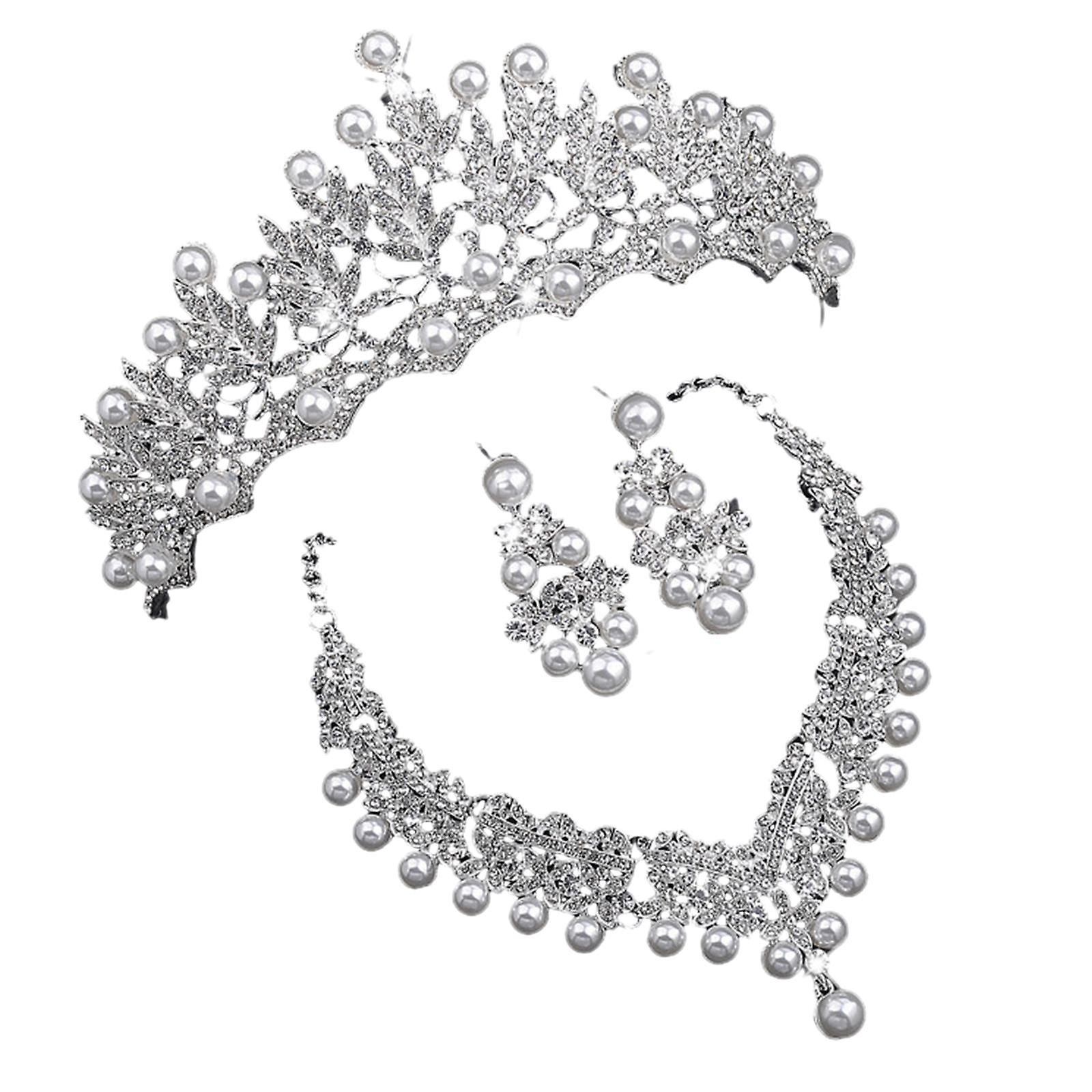 Bridal Jewelry Set Bridal Crown Bridesmaid Women Queen Crown Rhinestone Tiaras Necklace Earrings for Wedding Anniversary Prom