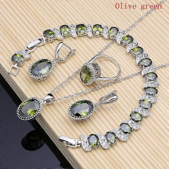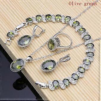 Natural 925 Silver Jewelry Red Birthstone Charm Jewelry Sets Women Earrings/Pendant/Necklace/Ring/Bracelets