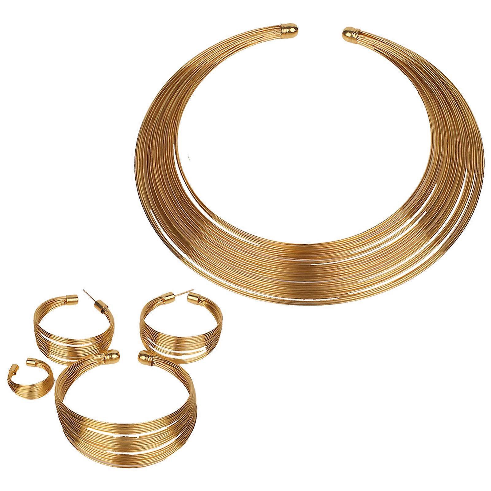 Women Jewelry Metal Four-Piece Necklace Earring Ring Bracelet Set 2Pcs