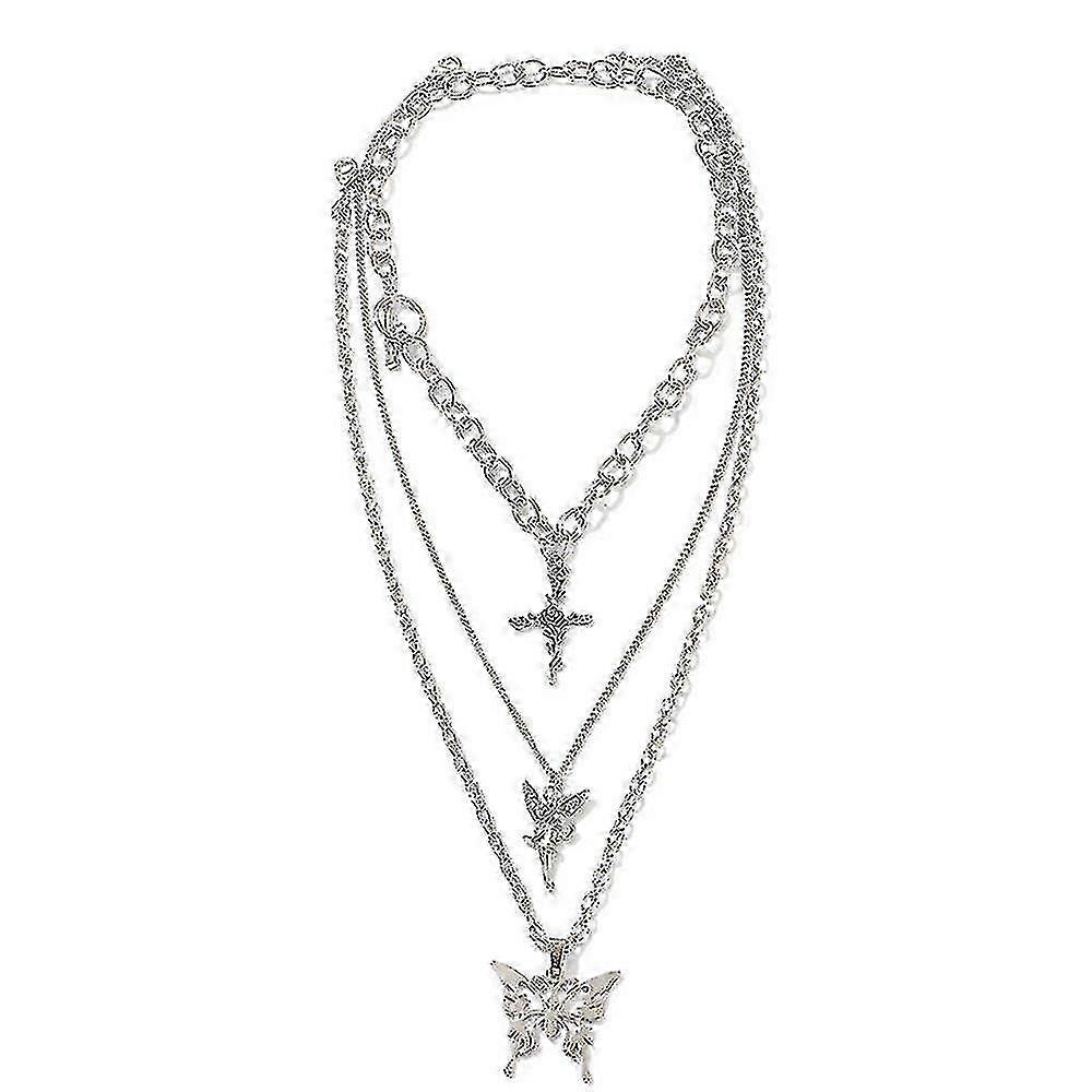 Layering Chunky Chain Choker Toggle Necklace Jewelry Set Layered Butterfly Cross Angel Pendant Statement Necklace Festival 2025