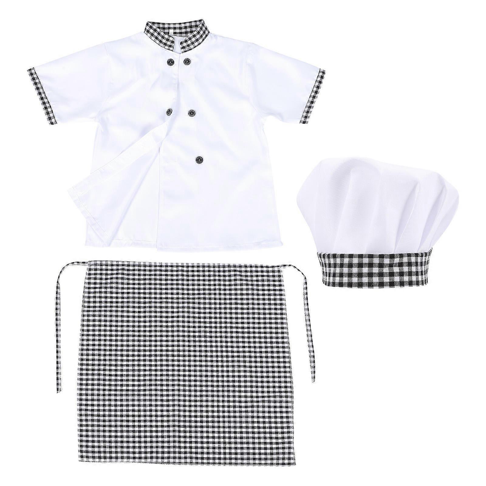 Chef Costume Set: Apron, Hat & Short Sleeve Shirt for Kids' Pretend Play & Dress Up Cooking Fun