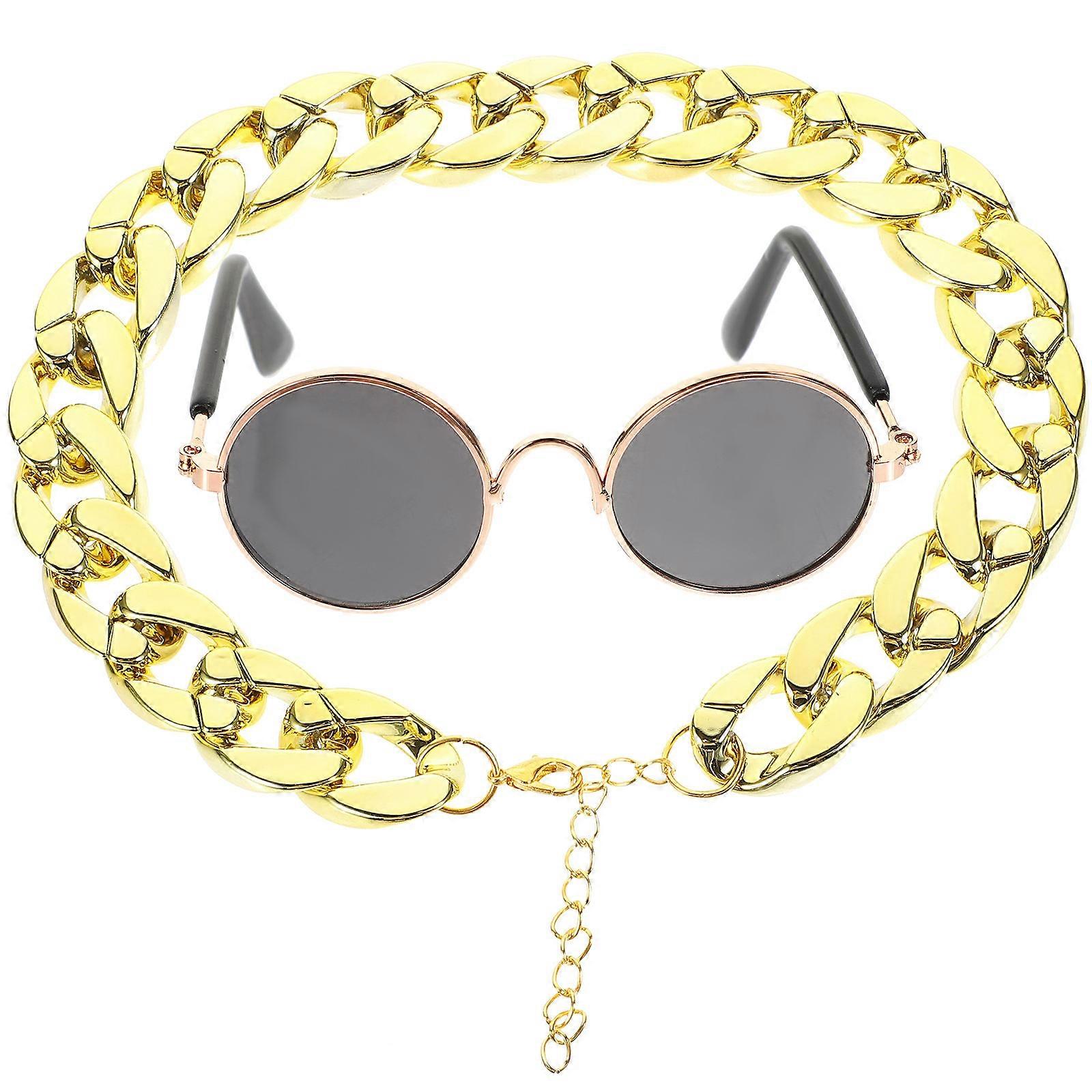 Fashion Pet Jewelry Metal Chain Pendant Set Ideal For Pet Owners Special Occasions Featuring Sunglasses And Necklace 2Pcs