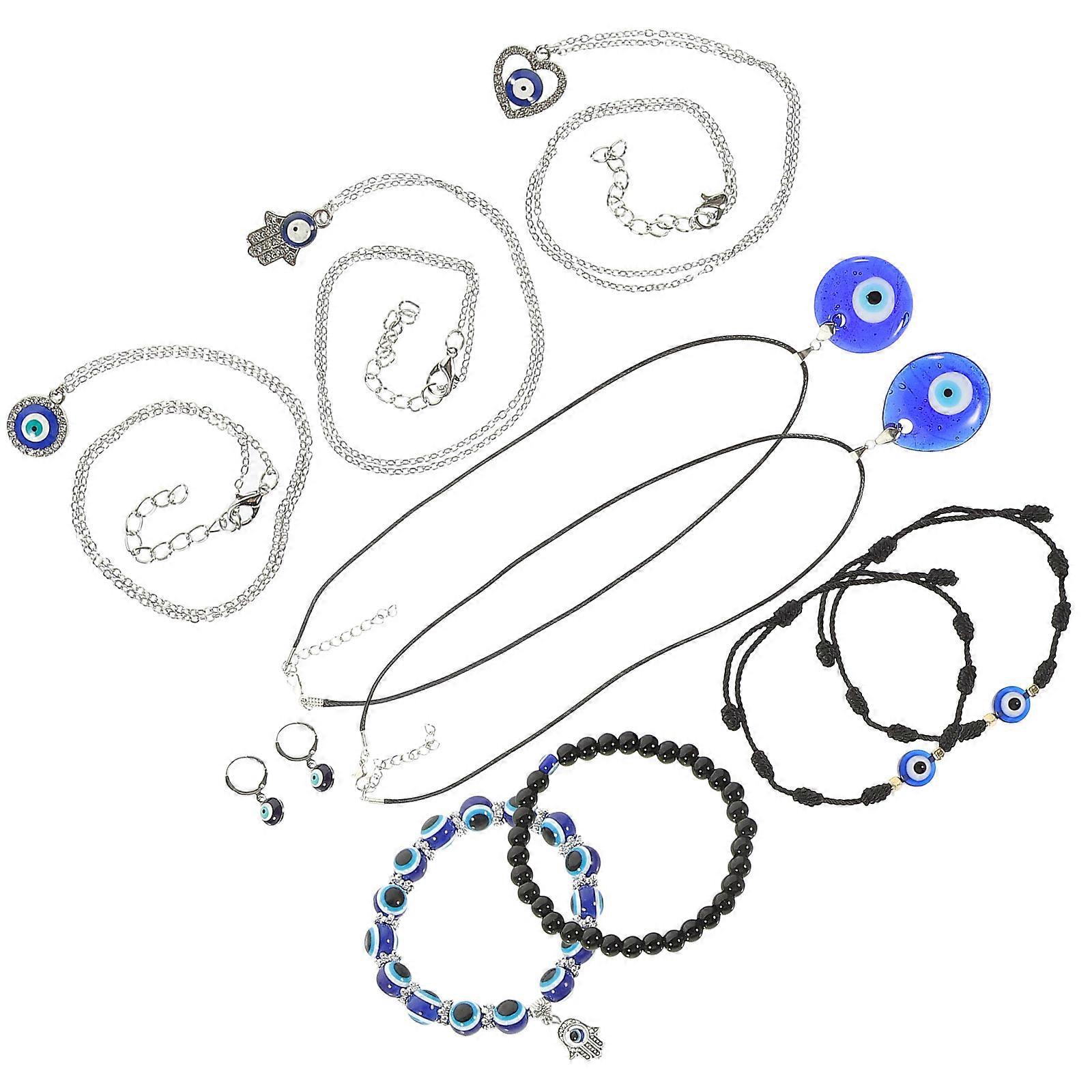 Evil Eye Necklace Pendant Set for Protection 4Sets Glass Material Assorted Color