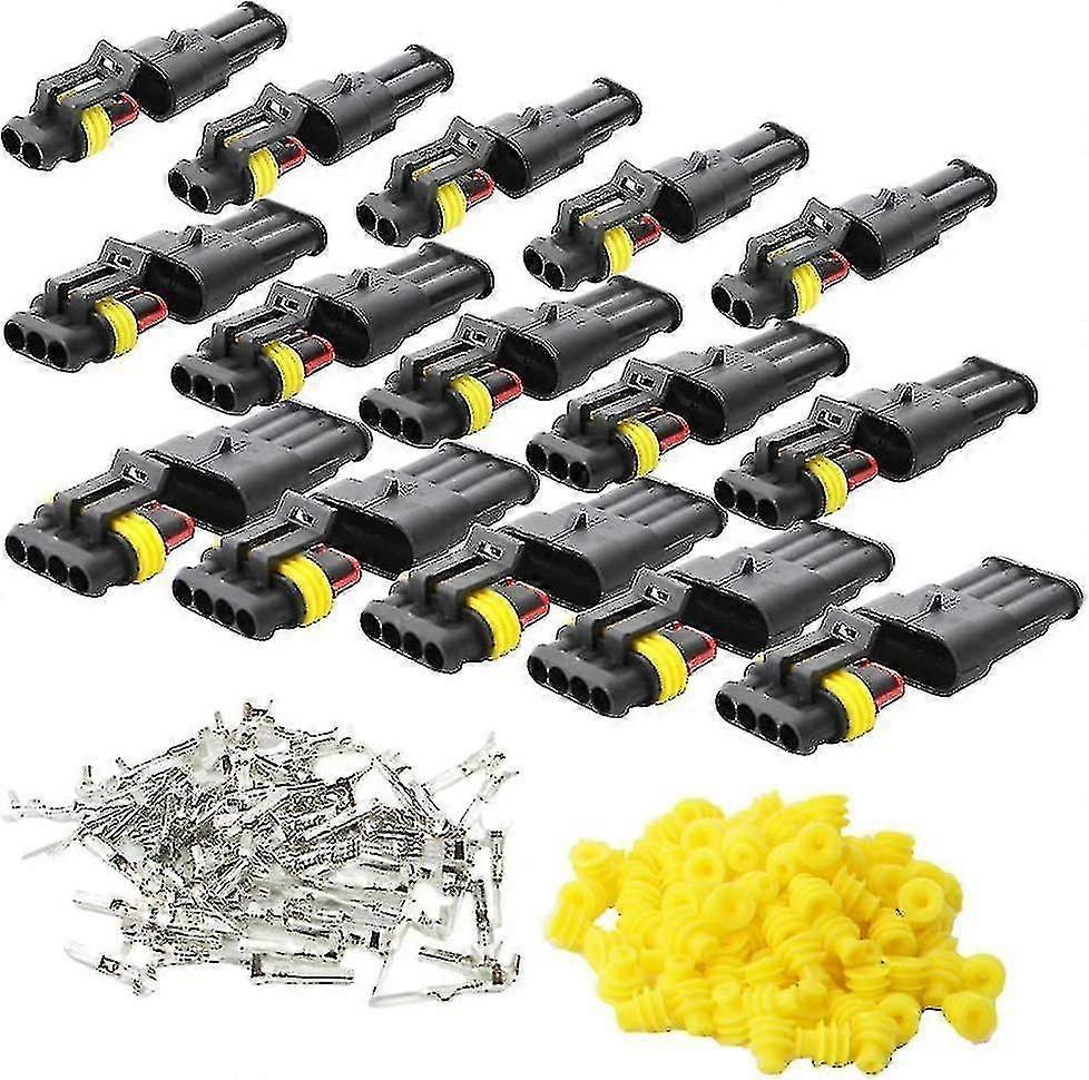 Waterproof Car Electrical Connector Plug, Fits 20-16 AWG Cable Core 2-way connector, 3-way connector, 4-way connector. Fit: Motorcycle, scooter, car, truck, quad, trike, caravan, marine, jet ski, boats, etc. Material: PVC, working temperature: -40-and120 package includes: 2 pin 5, 3 pin 5, 4 pin 5 Color name: Yellow, black Package includes: Plug-in male connector housing with 5-way 2-pin 2-pin 5-way female connector housing and insert Plug-in male connector housing with 5-way 3-pin 5-way 3-pin female connector housing and insert Plug-in male connector housing with 5-way 4-pin 4-pin 5-way female connector housing and insert 90 X Silicone Rubber Cable Seals 45 X male terminals 45 X female terminals Operating temperature: -40-and120 Convenient to install under soldering and crimping Ideal for motorcycle, scooter, car, truck, quad, caravan, marine, jet ski, boats, etc.