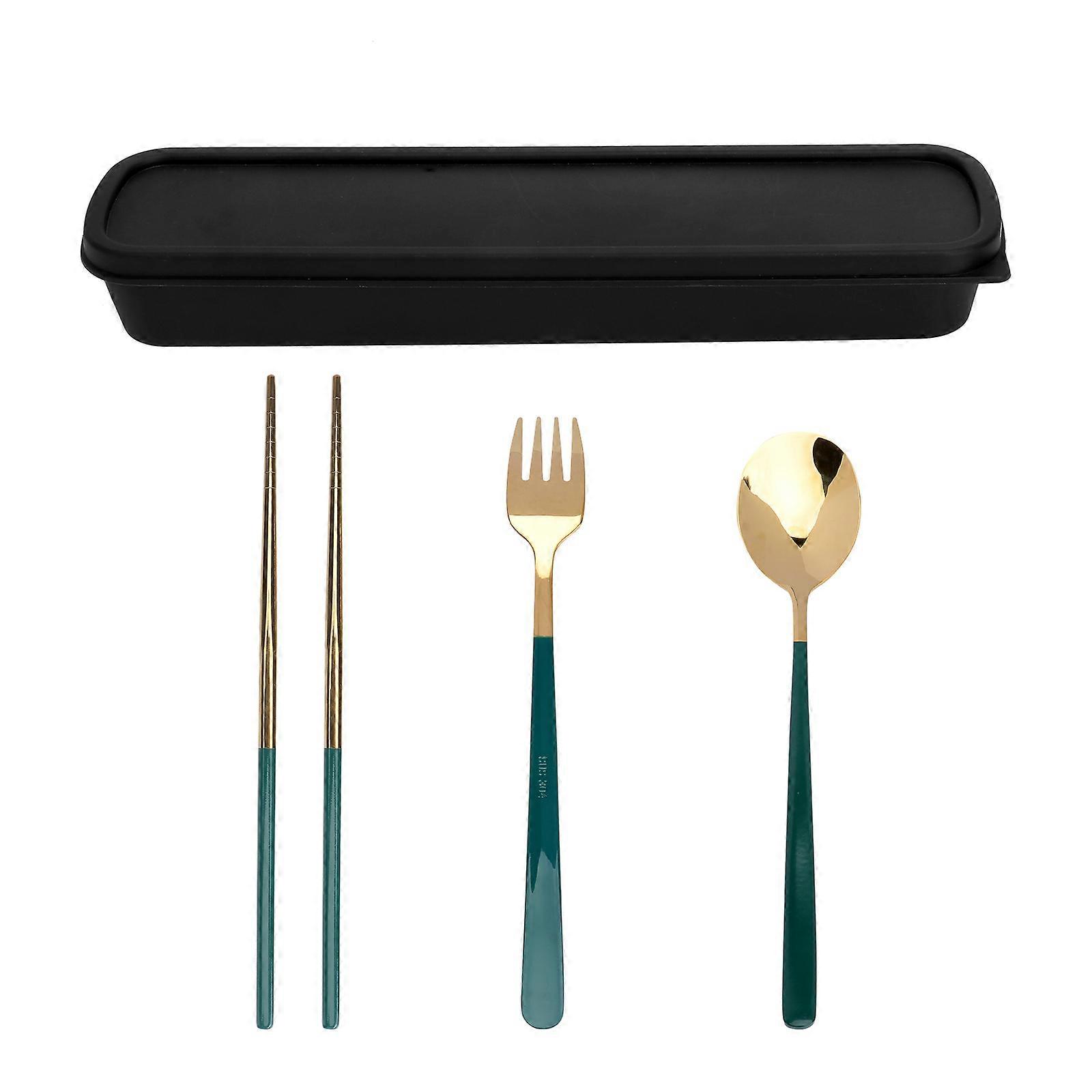 1 Set Stainless Steel Flatware Set,Portable Tableware Fork Spoon Chopsticks,304 Set,Reusable Chopsticks Dessert Fork Dinner Rice Spoon Gold Suit For