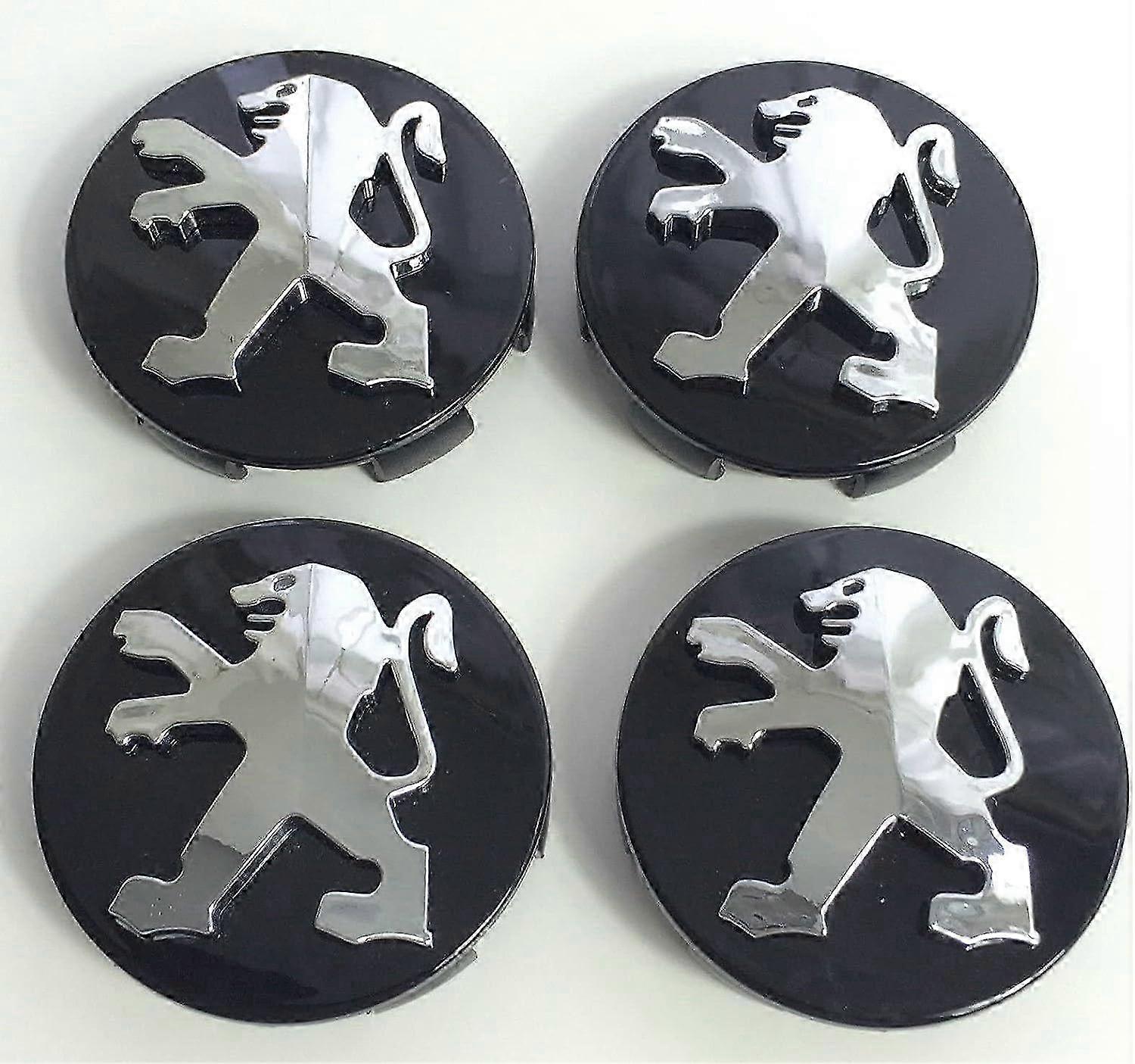 2025 Set of 4 Peugeot hub caps in black - chrome