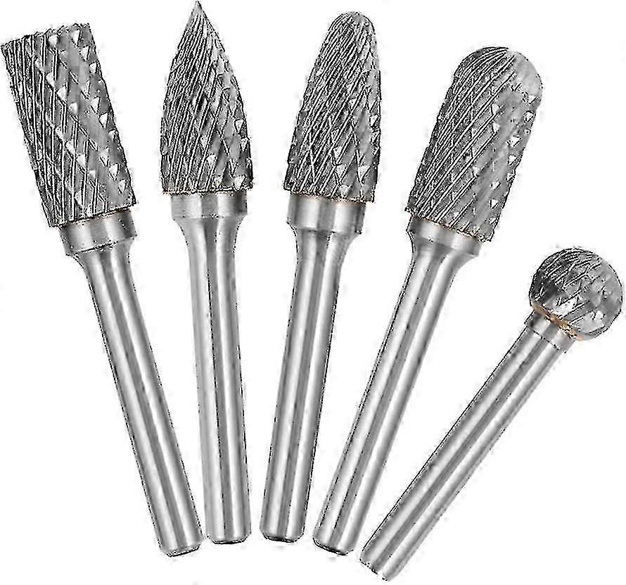 5 Pcs Tungsten Carbide Double Cut Rotary Burr Set with 6mm Shank & 10mm Head - Ideal for Metal, Wood, & Craft Projects