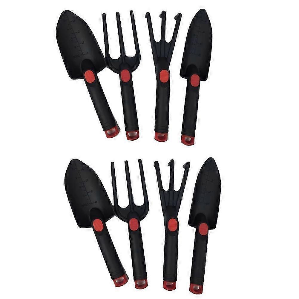 Handy campsite tool for digging holes and troughs, backyard gardening, and even gold prospecting! Graduated shovel blade for measuring depths. Reinforced handle and comfort grip. Colour:As Shown Material:Plastic Package Contents: 2 x big shovel 2 x small shovel 2 x three forks 2 x three claws Only the above package content, other products are not included. Note: Light reflection and different displays may cause the color of the item in the picture a little different from the real thing. The measurement allowed error is +/- 1-3cm.