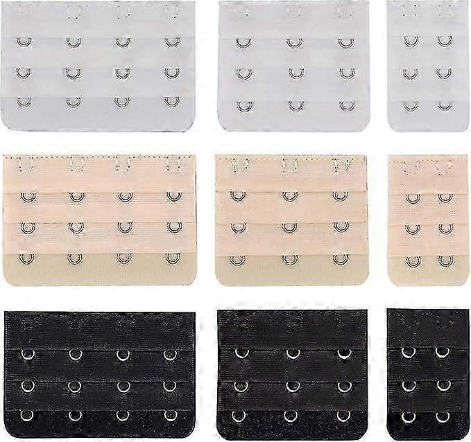 Set of 9 Bra Extender 2 Hook/3 Hook/4 Hook, Soft and Comfortable Bra Extension, Black, White, Beige