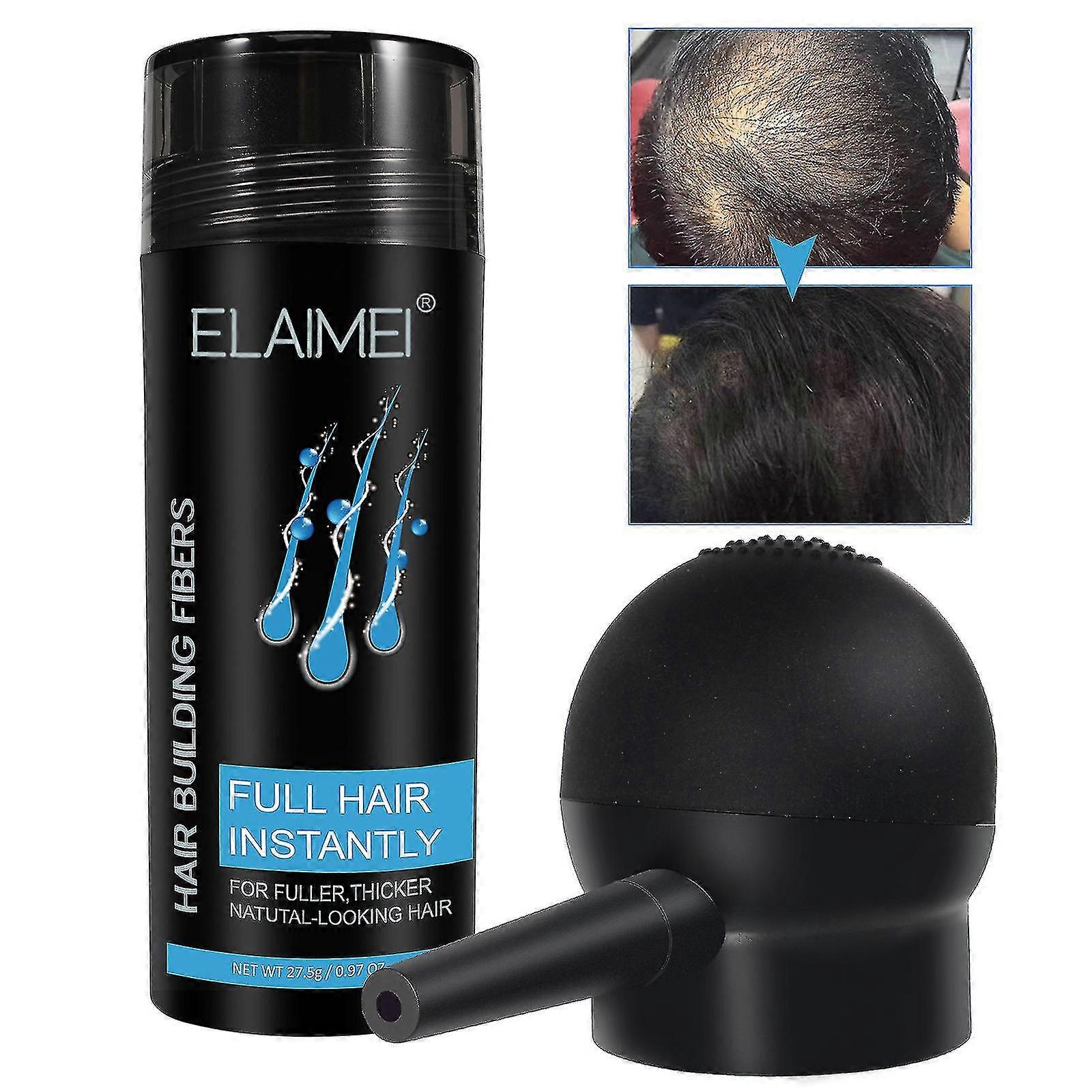 How Hair Fibers Work Principle of electrostatic adsorption When the hair fibers are evenly scattered in the thinning areas of your hair, it is like countless small magnets attached to your hair, so that each of your hair becomes thicker, which can eliminate alopecia areata and those embarrassing thinning hair areas. Natural beauty: It is not easy to fall, and the hair is full of elasticity. Anti-sweat: no fading, long-lasting effect. Windproof: free to move around, not affected by wind. No side effects: It is harmless to the scalp and can be used with confidence. Capacity: 22g Instructions: 1 When using, the hair must be dry. 2 Open the jar, put the fiber powder into the spray head, and spray the fiber powder on the top of the head at a height of 7.5 to 15 cm 3 If it is used near the forehead hairlines, block it with your thumb and index finger to prevent the fibers from falling on your eyes or face List: Hair fiber powder*1 Nozzle*1