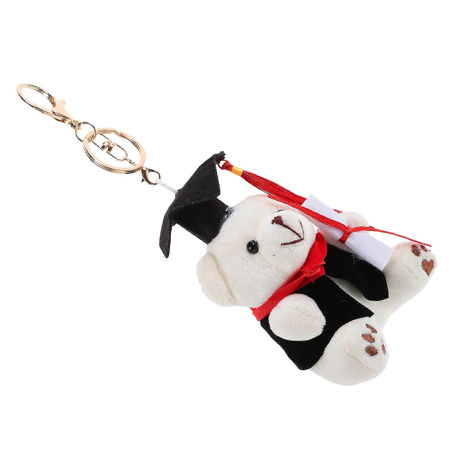 Graduation Bear Keyring Pendant Stuffed Animal Keychain Students Compact Size Beige Plushie 1Pack