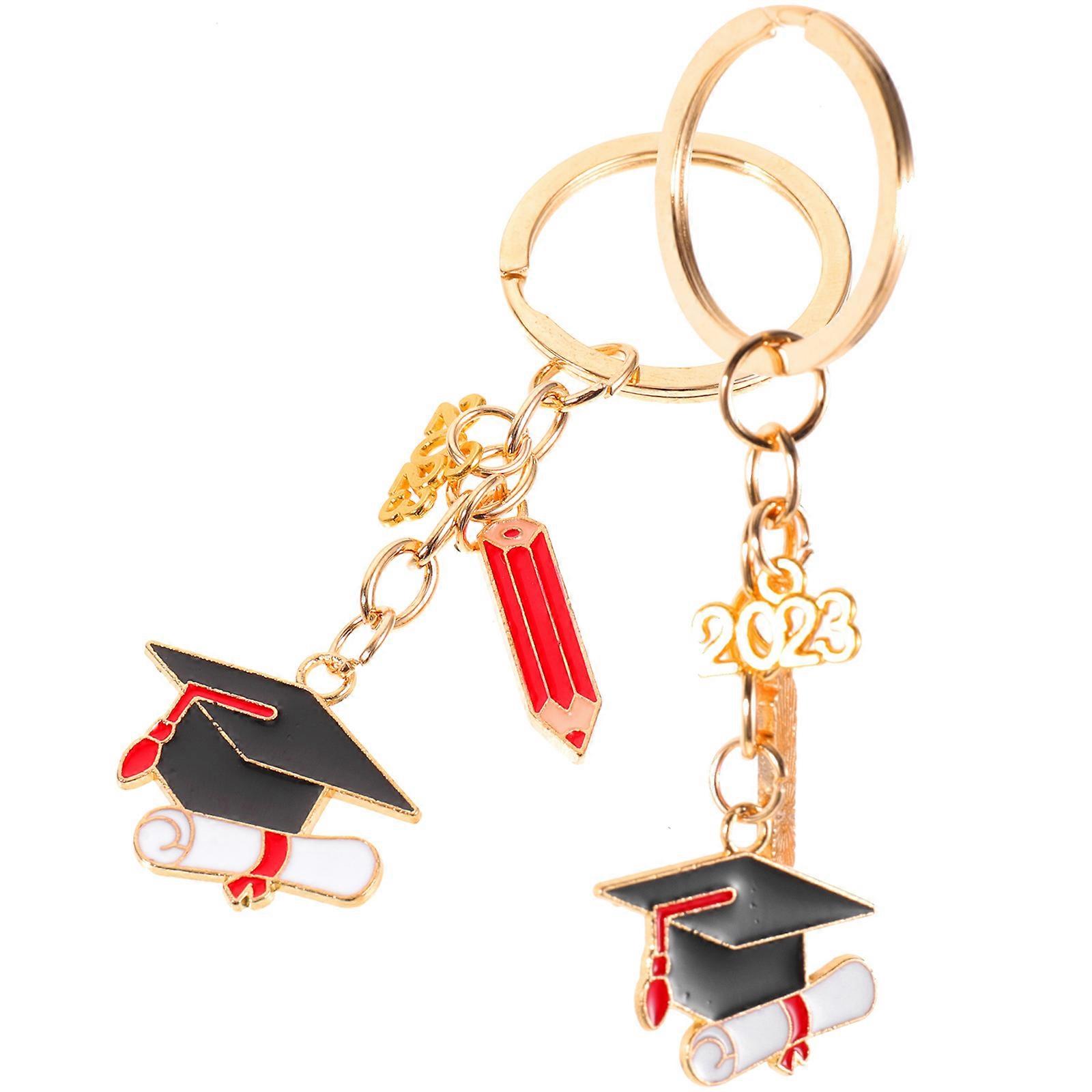 Graduation Themed Keychain Square Keyring Pendants Graduation Parties Christmas Parties Key Organizer 2Pcs