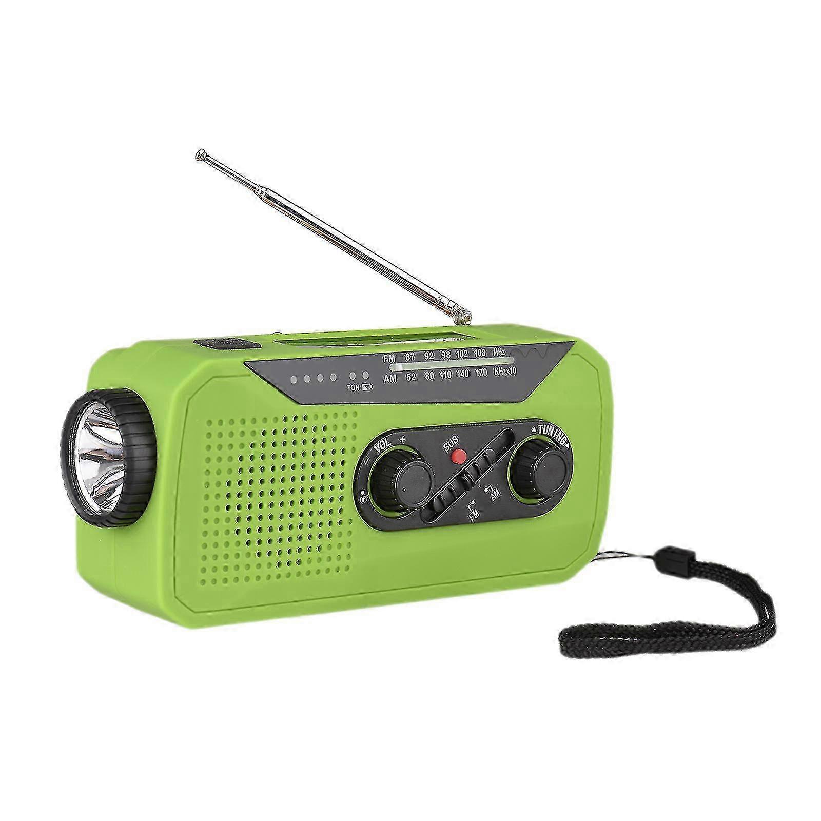 Wind Up Solar Radio Emergency Solar Radio Crank Powered Radio with Rechargeable Battery SOS Alarm AM/FM Bright Flashlight Headphone Jack USB Port for Outdoor Camping Hiking Green EU Type The emergency weather radio with 4 ways of power backup options is the best choice for emergency or power outage: rechargeable battery, hand crank, solar panel, and USB charger. It can provide a long time light & radio, also providing emergency power bank for iPhones & iPad & cellphones. Features: [Flashlight & SOS Alarm]Built-in high power LED emergency flashlight, the SOS siren sends a distress signal in an emergency. [AM/FM]Reception scope of the FM: 87-108 MHz to receive entertainment, and sports. AM: 520-1700KHz to get up to date with the latest weather. [Rechargeable Battery]The solar & hand-crank powered radio with 5V Micro USB charging input, and a built-in 2000mAh battery. [Headphone Jack]With 3.5mm useful headphone jack socket, 30cm telescopic antenna for high sensitivity reception. [Useful]The solar radio can be with you on camping, backpacking, hiking, or on a power outage day. Specifications: Color: Red; Blue; Green; Orange (Opional) Types: EU Type; US Type (Optional) Material: ABS Battery: 1*3.7V 2000mAh Lithium Batteries Function: LED Torch/AM/FM/SOS/WB (EU type do not have WB (NOAA) function) AM: 52-170KHz FM: 87-1.8MHz WB: 162.400-162.550MHz (EU type do not have WB (NOAA) function) Occasion: Camping, RVs, Cars, Home, etc Package Size: 16.5*7.5*6cm / 6.49*2.95*2.36inch Package Weight: 302g / 0.66lb Package List: 1 * Wind Up Solar Radio 1 * USB Cable 1 * User Guide