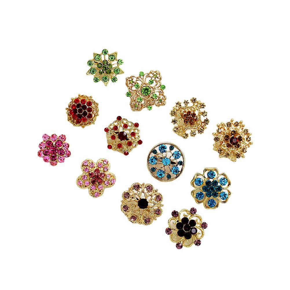 Decorative Brooch Rhinestone Flower Pin for Women Graduation Ceremony 12 Pcs