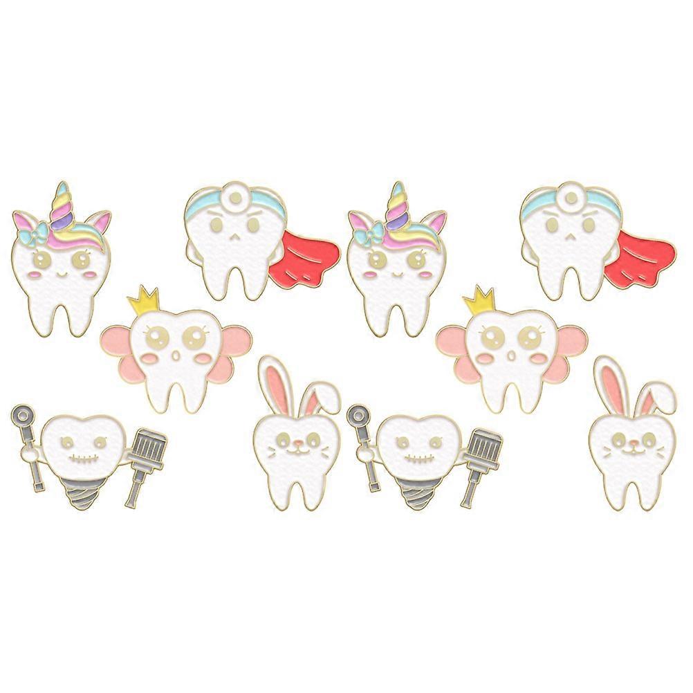 Brooch Badge Pin Cartoon Tooth Shape Metal For Clothes Bags Backpacks 3 5X2 5cm Zinc Alloy Fashionable Chic 10Pcs