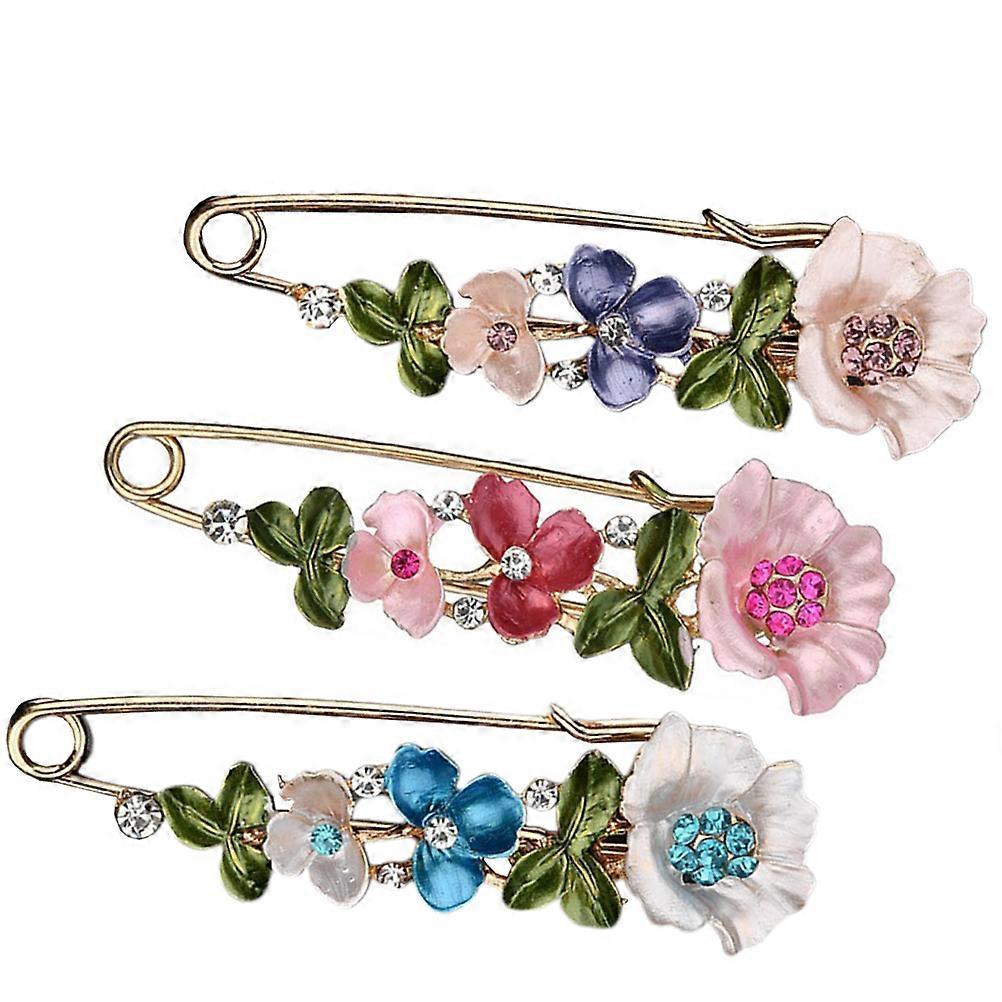 Flower Brooches For Women Christmas Party Costume Accessories 8X2cm Alloy 3Pcs