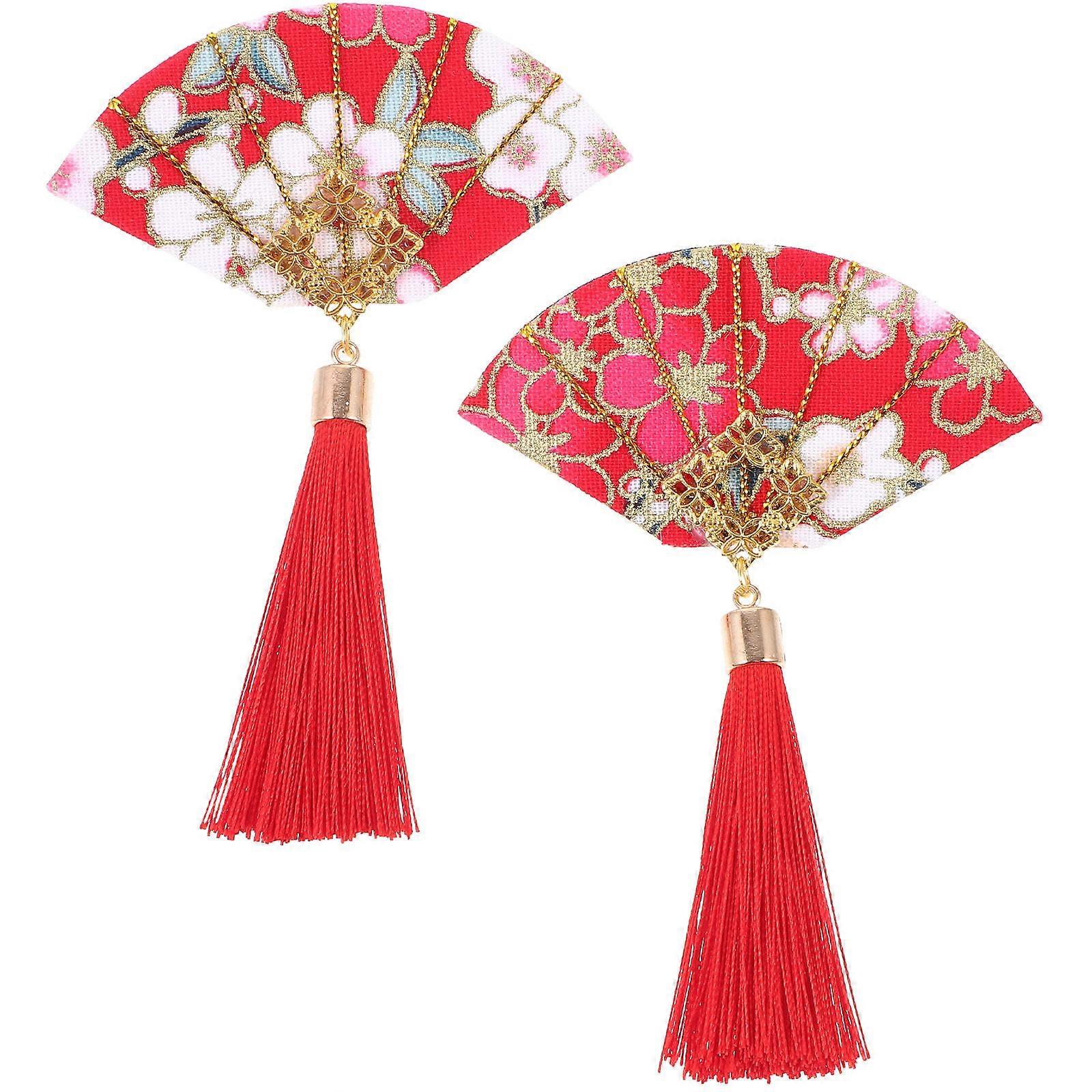 Fan-shaped Hair Clips For Children Family Gatherings Stage Performance 8 Pcs Stylish Red Hair Decoration