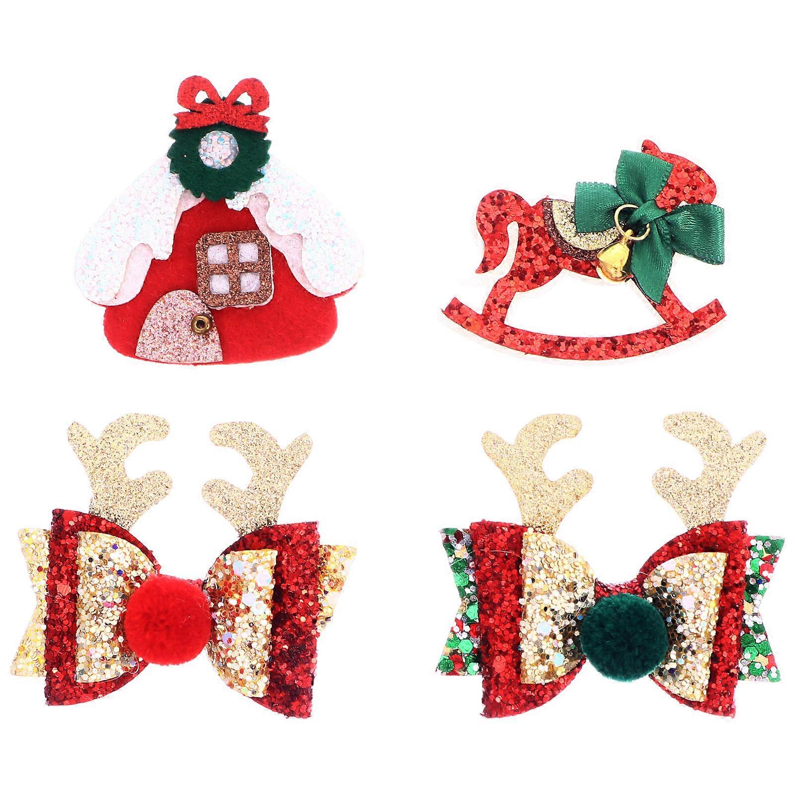 Bowknot Hairpins 4Pcs Beautiful Hair Accessory For Toddler Assorted Color Glitter Sequins Perfect For Christmas Baby Shower
