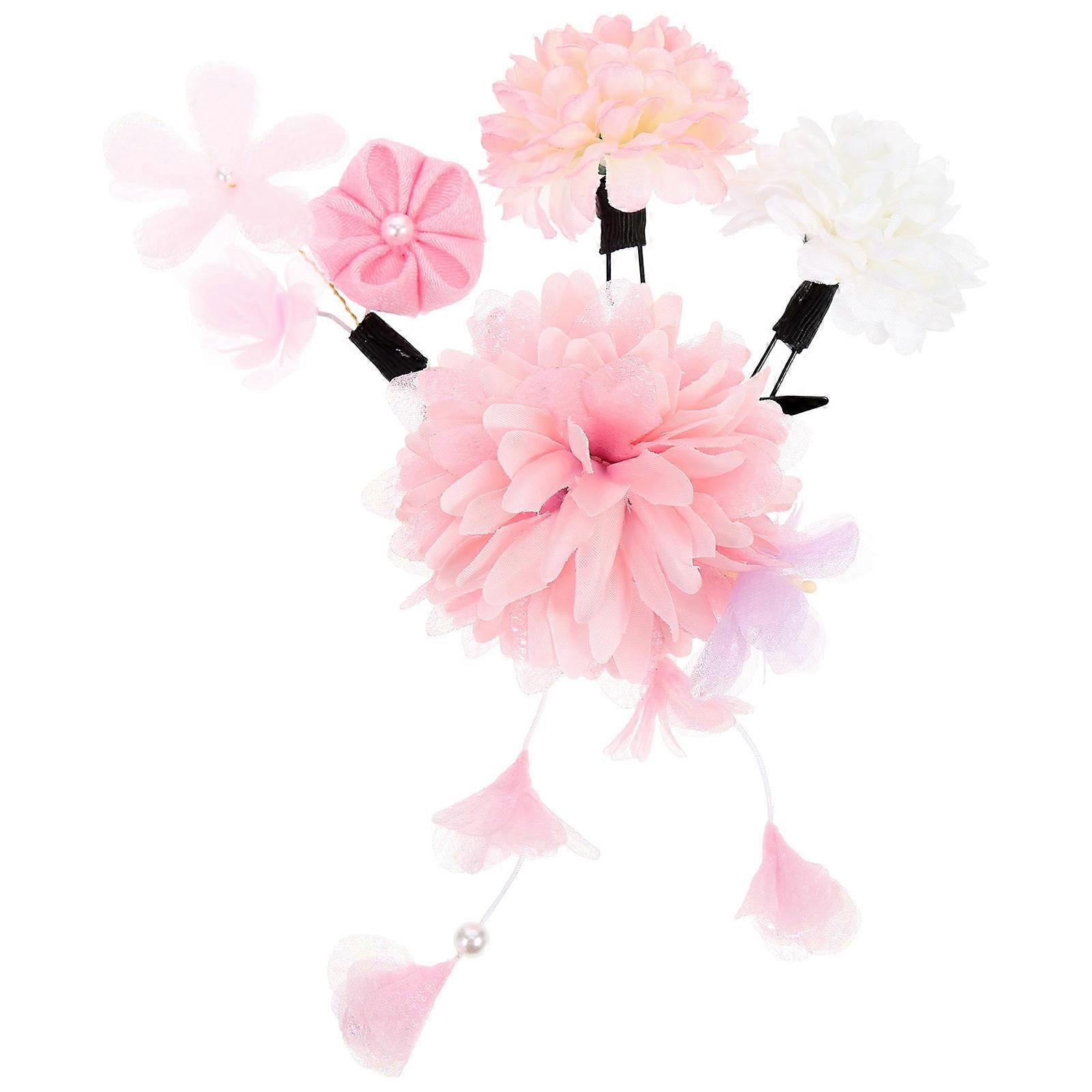 Pink Fabric Flower Hair Clips for Female Kids 1Set Floral Hairpins