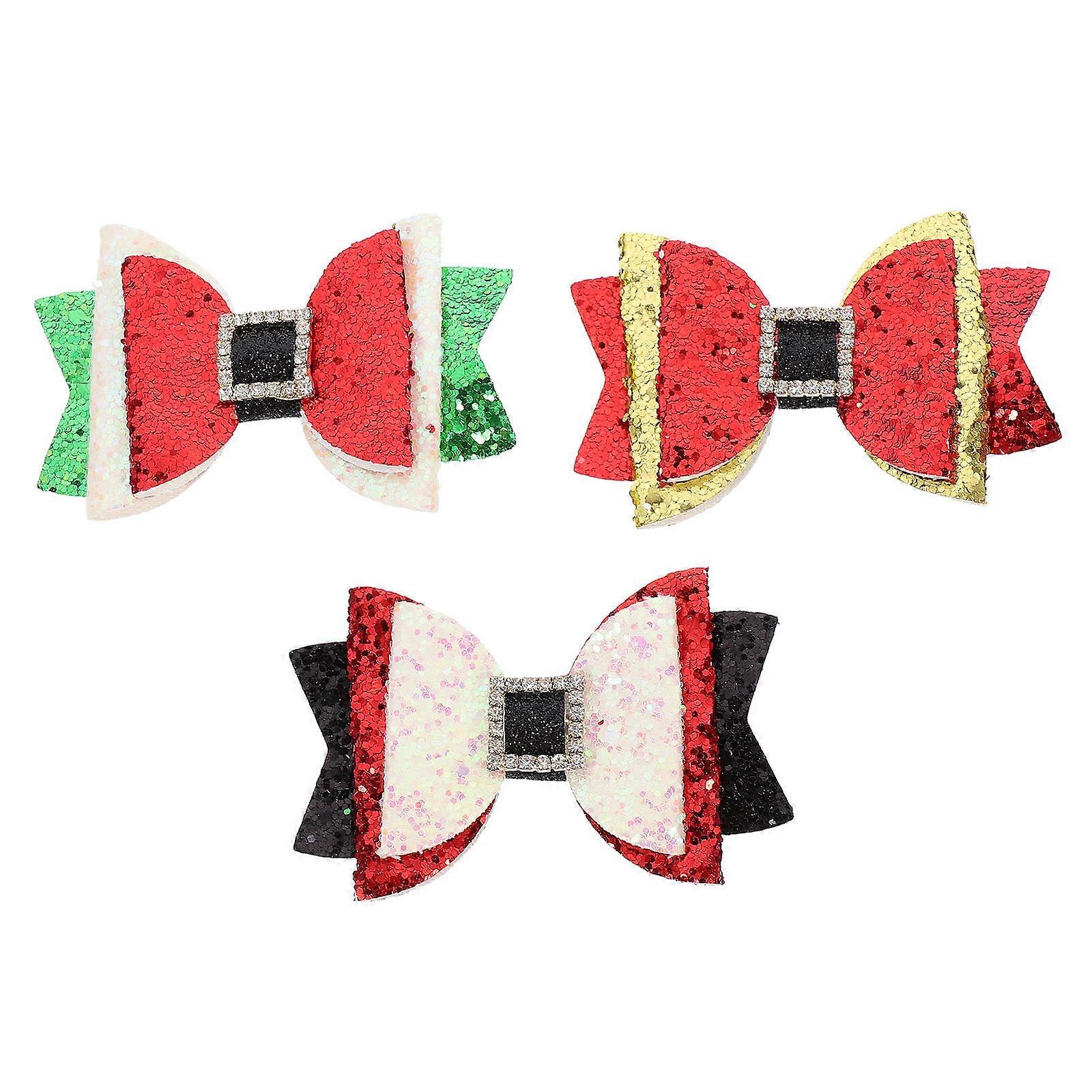This Christmas hair bow barrette, made of the , is durable for long time use. Bright color makes it more in line with the theme of festival. Great for the ceremony, wedding, birthday, party, etc. Besides, It is great for photography and adds a touch of elegance. Features -Color: Assorted Color. -Material: Glitter, Rhinestone, Metal. -Size: About 7.61X5.00X1.50cm/2.99X1.97X0.59in. - Manufactured by material, it is durable and practical for use. - Match well with any Christmas outfit. Also great for daily or important occasions. - Come with bow knot barrettes of different styles to satisfy your hair decoration. - Great for Christmas costume parties, Christmas snap-shoot, carnivals, wedding, new year hair accessories, etc. - It could be the great gifts for you daughter or the wonderful award for her. Package list: 3 x hairpins