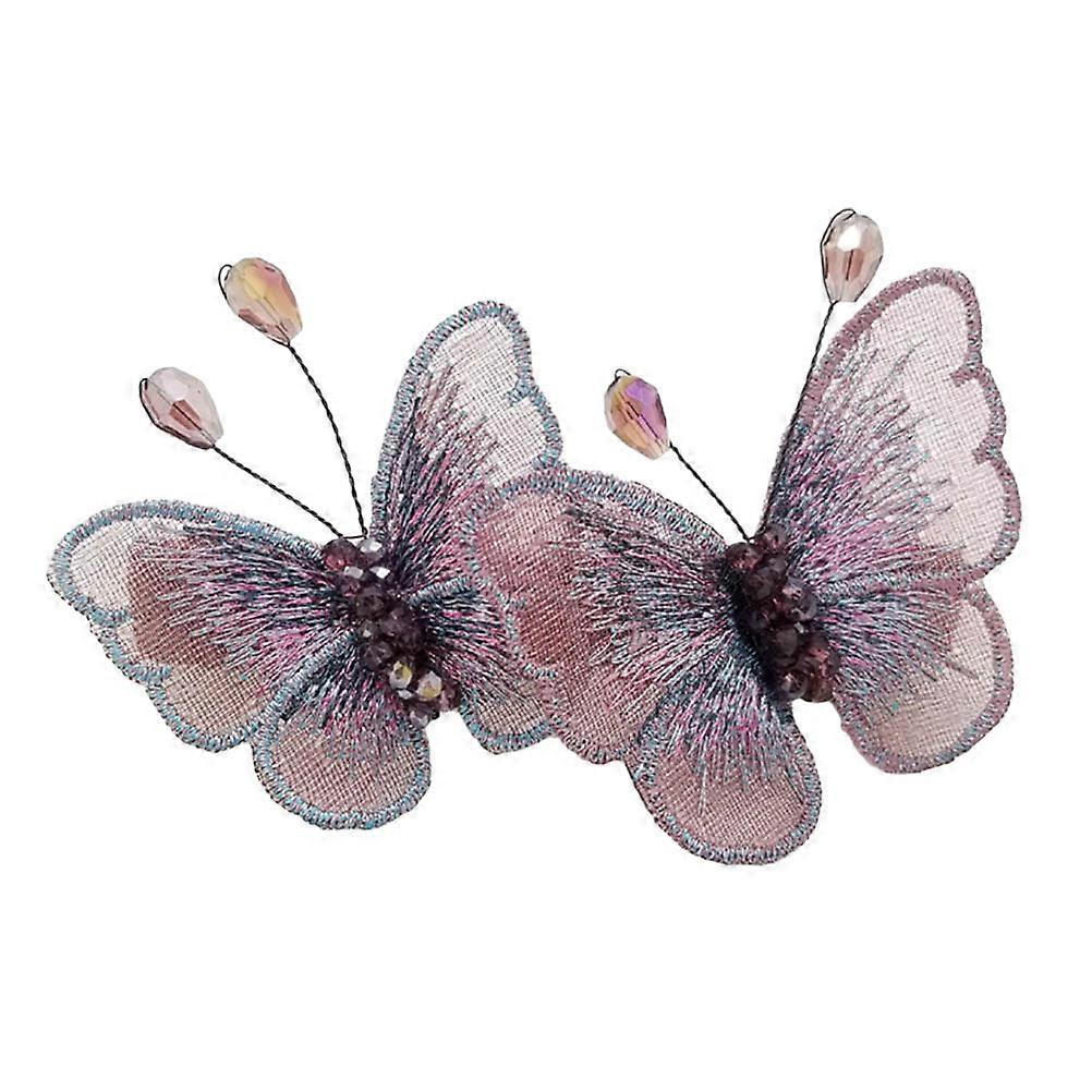 Barrette Embroidery Hair Clips for Decoration 2Pcs Purple Stylish Hairpin