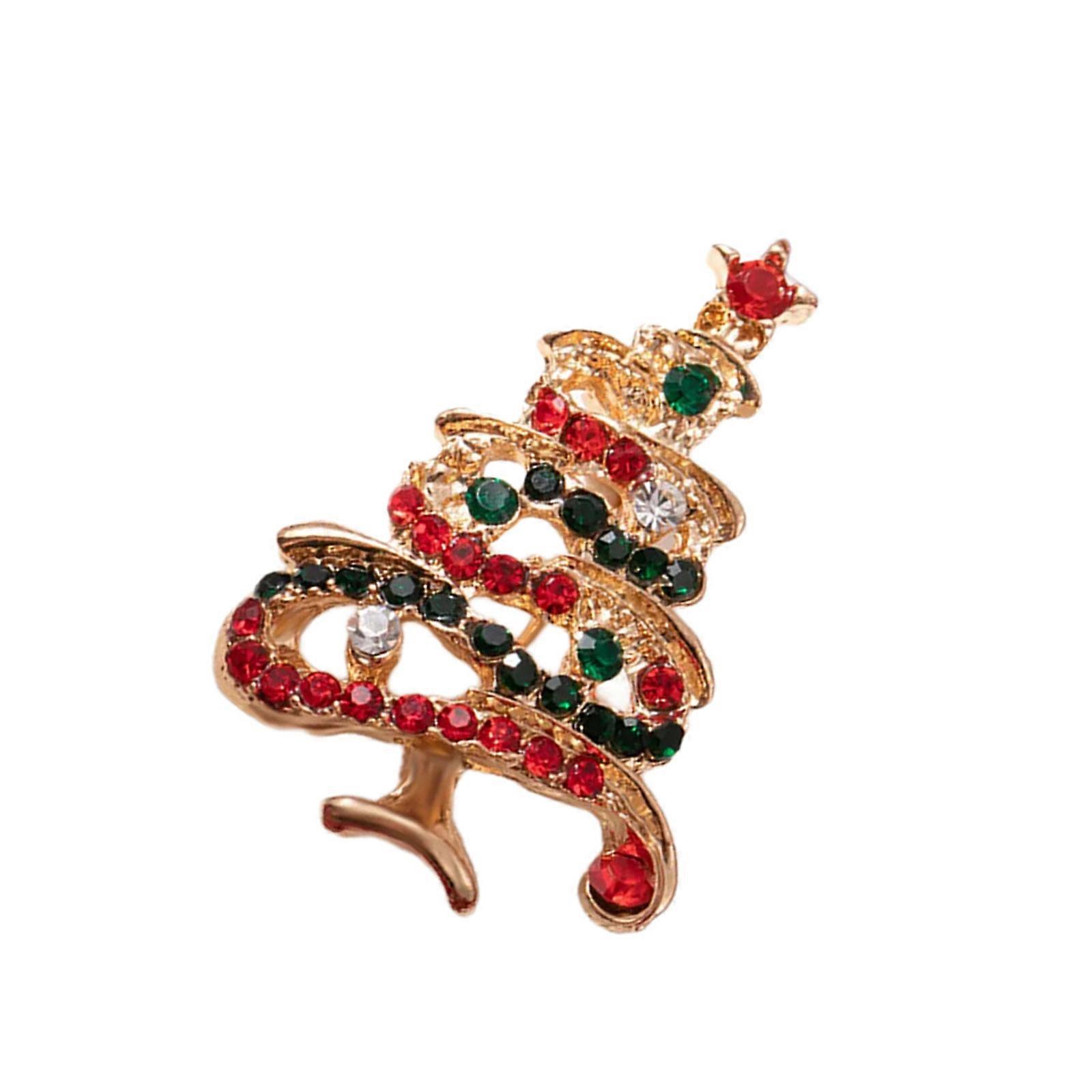 Christmas Tree Snowman Pin Alloy Accessory Featuring Crystals Detail Festive Outfit Jewelry For Holiday Event Multicolor