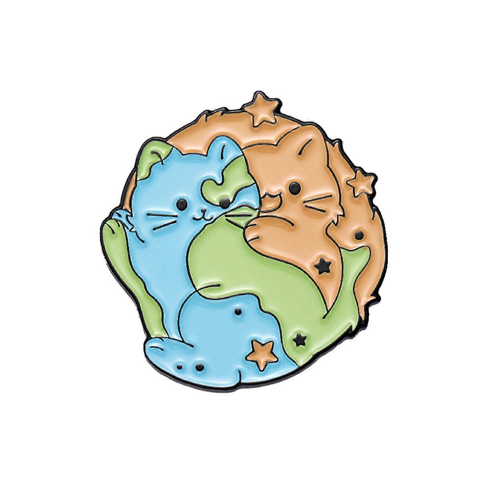 Cute Animal Enamel Pin Earth Cat Brooches Lapel Pin Environmental Awareness Badges Clothing Bag Decorations Hat Pin
