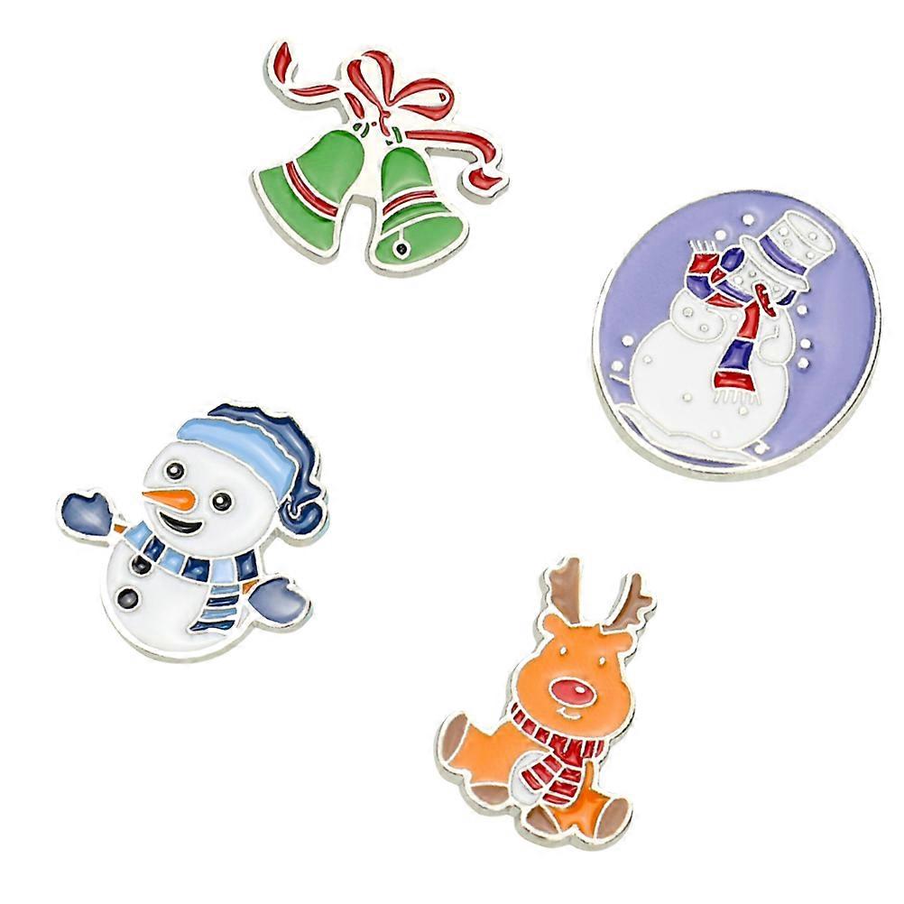 Enamel Pin Badge Round Christmas Elements Brooch Zinc Alloy Costume Decor Ornament Kids Daily Wear 4Pcs