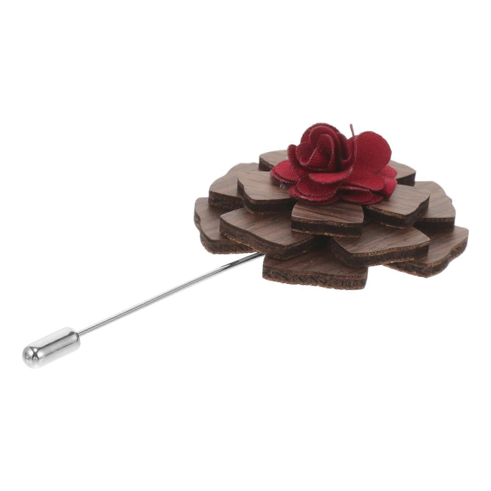 Flower Boutonniere Pin for Formal Events Men Women Suit Decorative Wooden 8.80X4.50X1.00CM Not Easy to Fall Off 1Pack