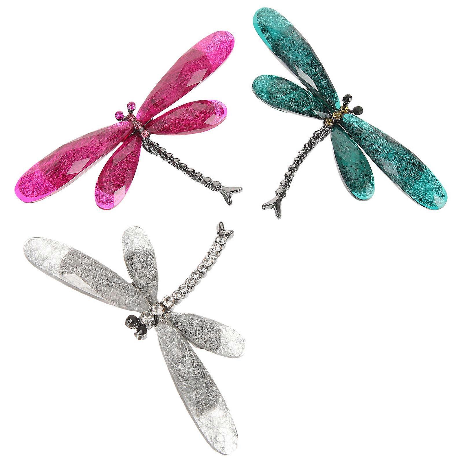Lapel Pin Dragonfly Accessories Women Jewelry Gift For Girls Christmas Valentine's Day Parties Resin Fabric Connection 3Pack