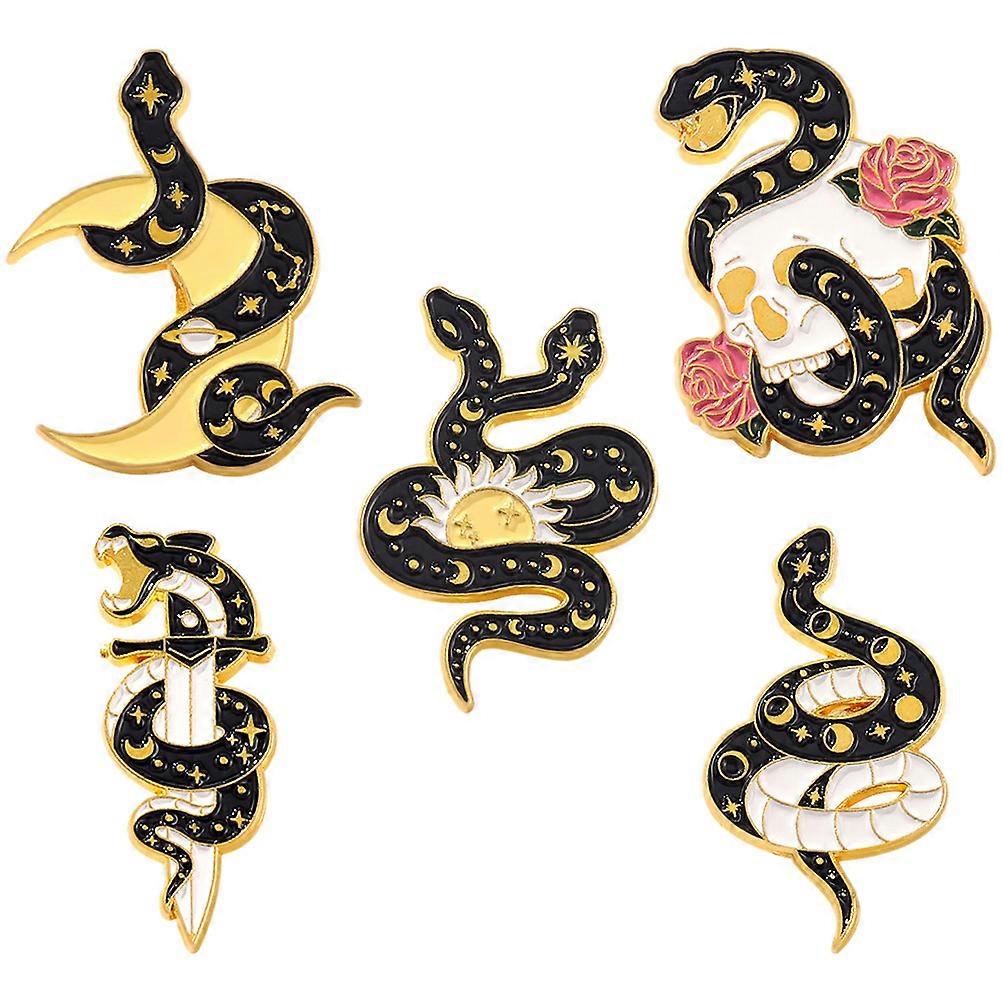 Classic Snake Brooch Pin Alloy Material Durable For Clothes Hats 5Pcs