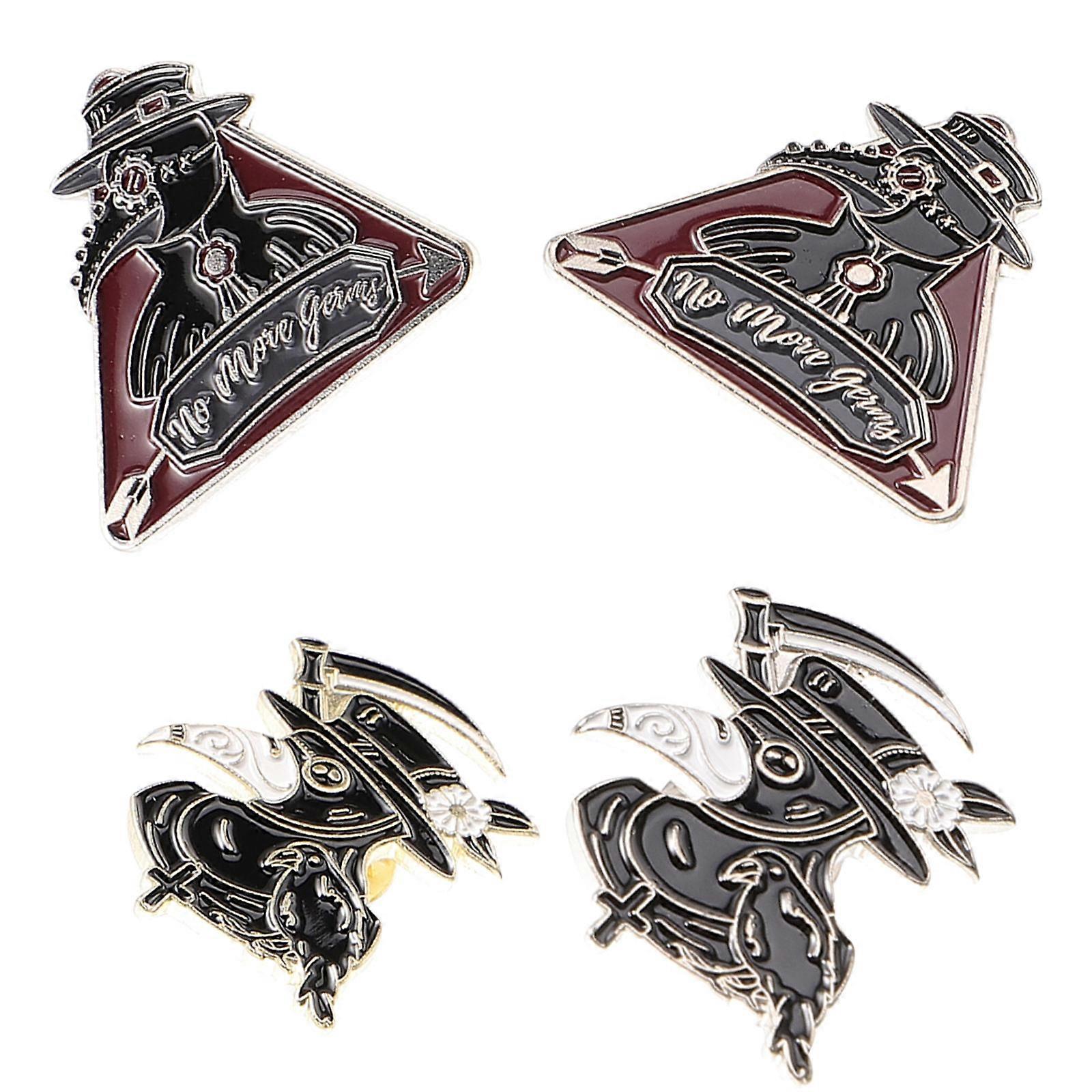 Punk Crow Brooch for Decor 4Pcs Alloy Plague Series Badge