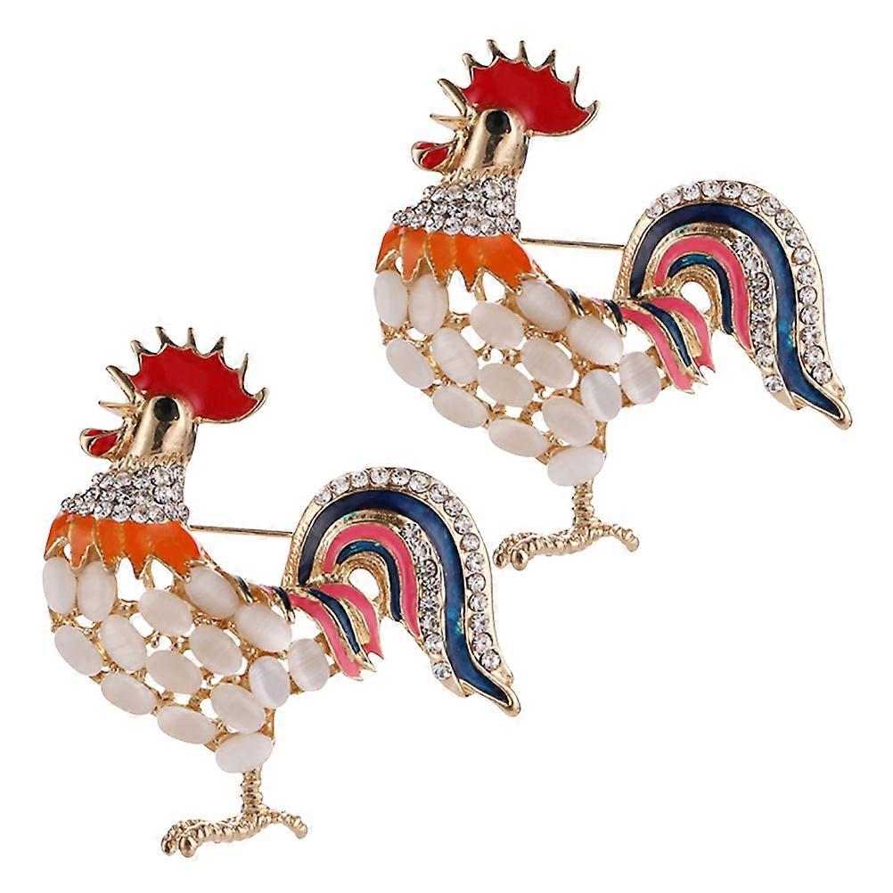 Bird Brooch Chicken Jewelry Alloy Rhinestone Gold Plated Enamel Vintage Animal Lapel Pin Clothing Decor 2Pcs For Women Ladies