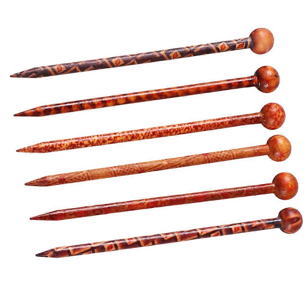 Wooden Hairpin Retro Hairpin for Decoration 6Pcs with Ethnic Style Printing