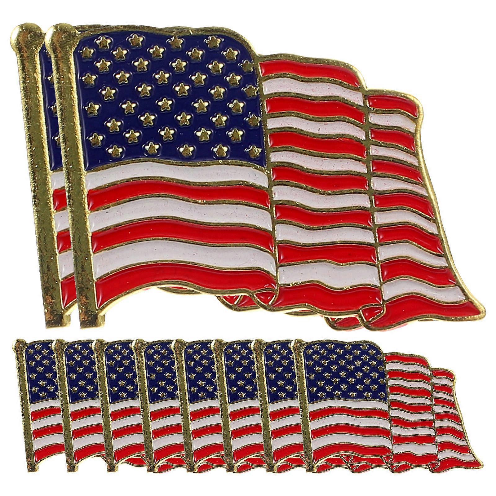Fashion Label Pin American Flag Brooch for Decoration 10Pcs Assorted Colors
