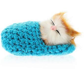 Simulation Sleeping Cat Doll Mini Kitten in Shoe for Kids Girls Blue 10.00X6.00X3.00CM Meows Sounds 1Pack